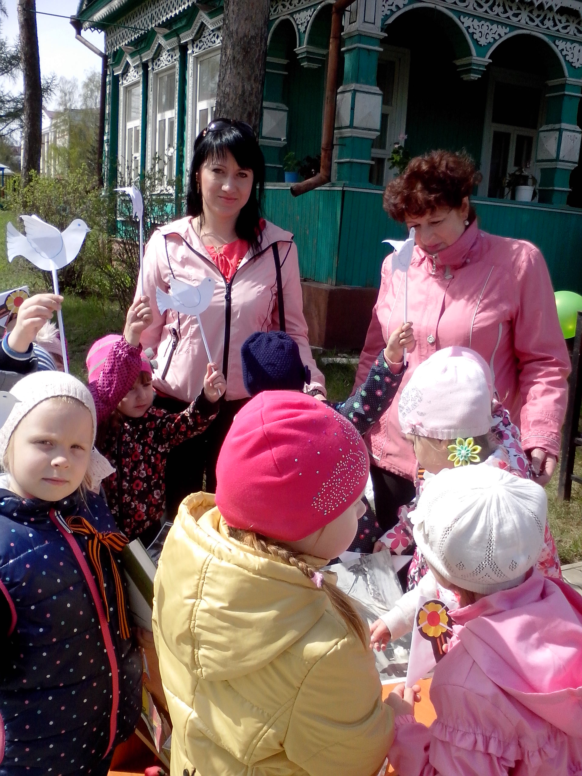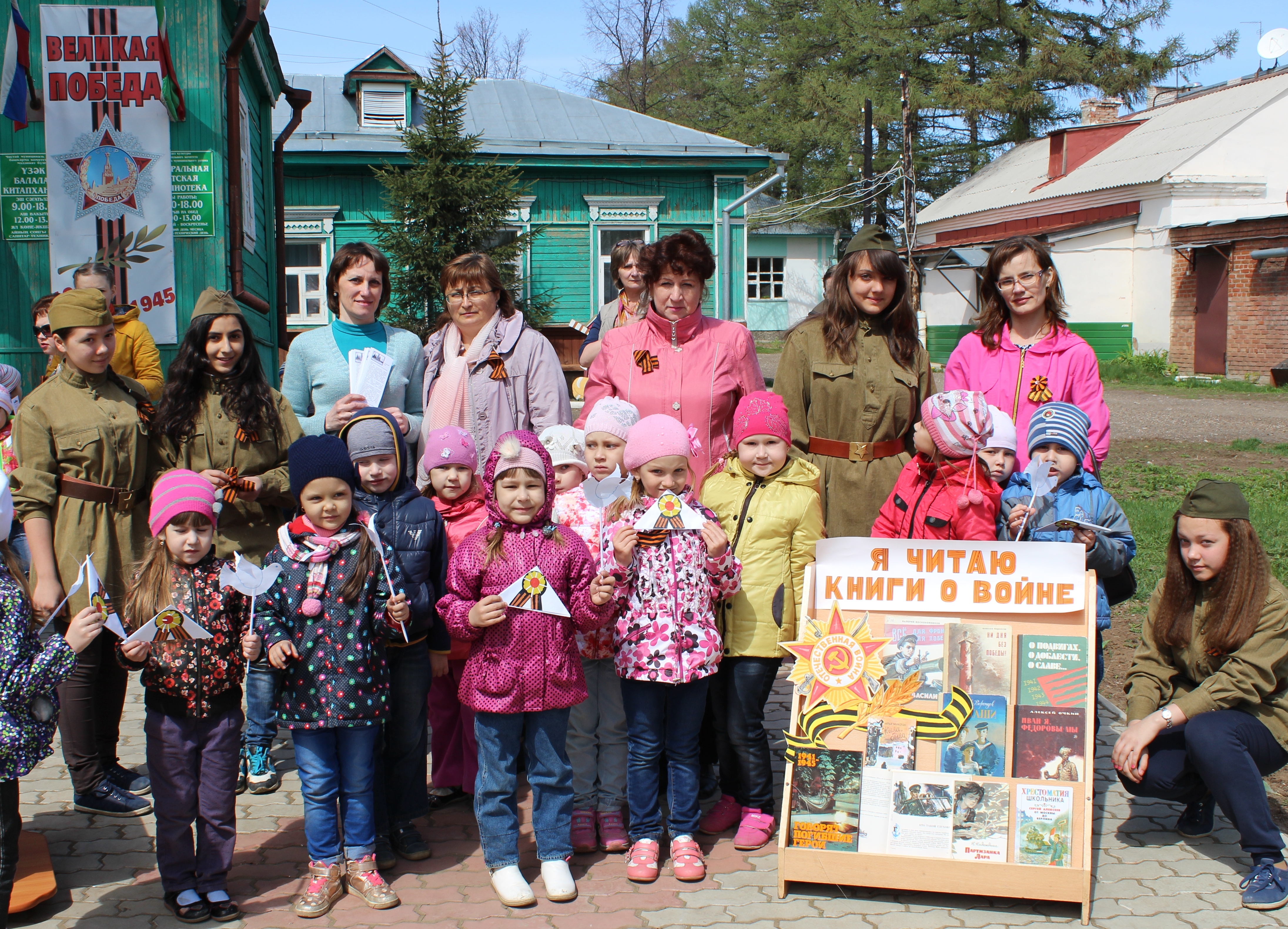 Во дворе библиотеки была организована работа выставки «Я читаю книги о войне», с которой познакомились учащиеся школ и воспитанники детских садов. Ребята отвечали на вопросы викторины «Сквозь огонь прошедшие» посвященную героям – землякам и приняли участие в мастер-классе «Символ мира».