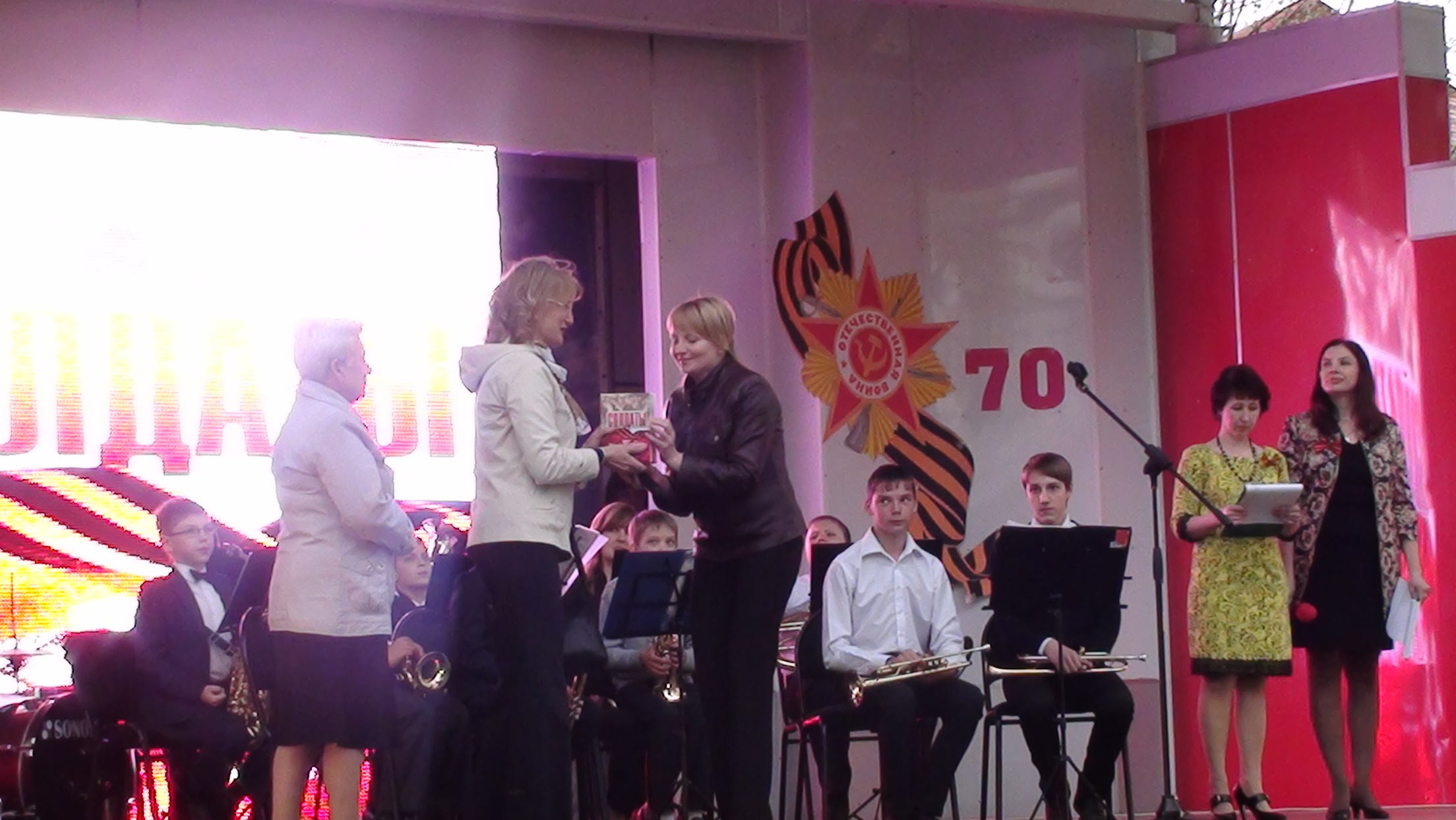 Украшением праздника стали музыкальные номера оркестра и ансамбля духовых инструментов под руководством Шляхтина В.М. Детской школы искусств им. С. Губайдуллиной. На площадке работала книжная выставка «Великая война – Великая Победа», стенд «Листая старые газеты», «Книжный развал», продажа книг. Мероприятие сопровождалось показом на экране видео — презентации.