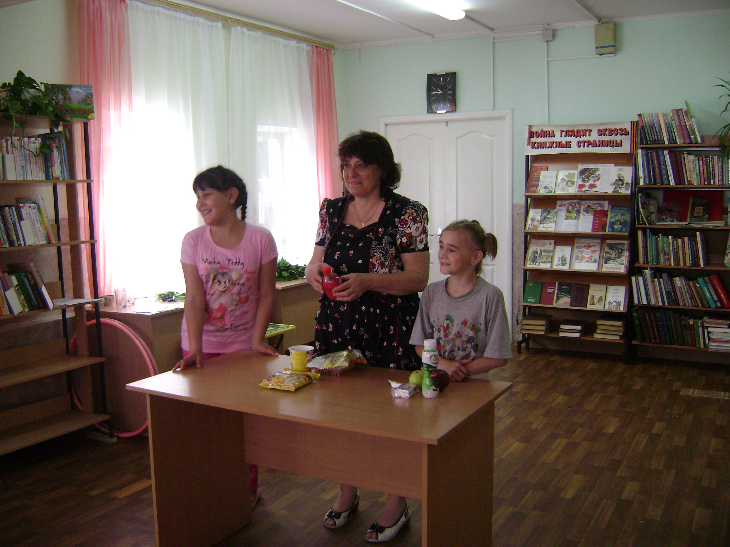 Так ребят из пришкольного лагеря « Звездный» СОШ №16 и « Патриот» гимназия № 2 мы пригласили на познавательно – игровую программу « Мы пришли вас научить, как здоровье сохранить». В ходе встречи шёл разговор о том, как заботиться, о своём здоровье, что нужно делать, чтобы не болеть, дети вспоминали пословицы о здоровье, разгадывали загадки Мойдодыра. Затем ребята с азартом участвовали в весёлых эстафетах « С легким паром», « Свари кашу», «Грязнуля и Чистюля». А также в познавательных конкурсах «Бесполезные продукты», « Вредные привычки» и др. Дети с удовольствием принимали участие в спортивных эстафетах и состязаниях « Стройный – значит красивый», « Самый ловкий», отвечали на каверзные вопросы викторины « Будь здоров». В заключение ребята еще раз вспомнили о несложных, но обязательных, правилах здорового образа жизни.