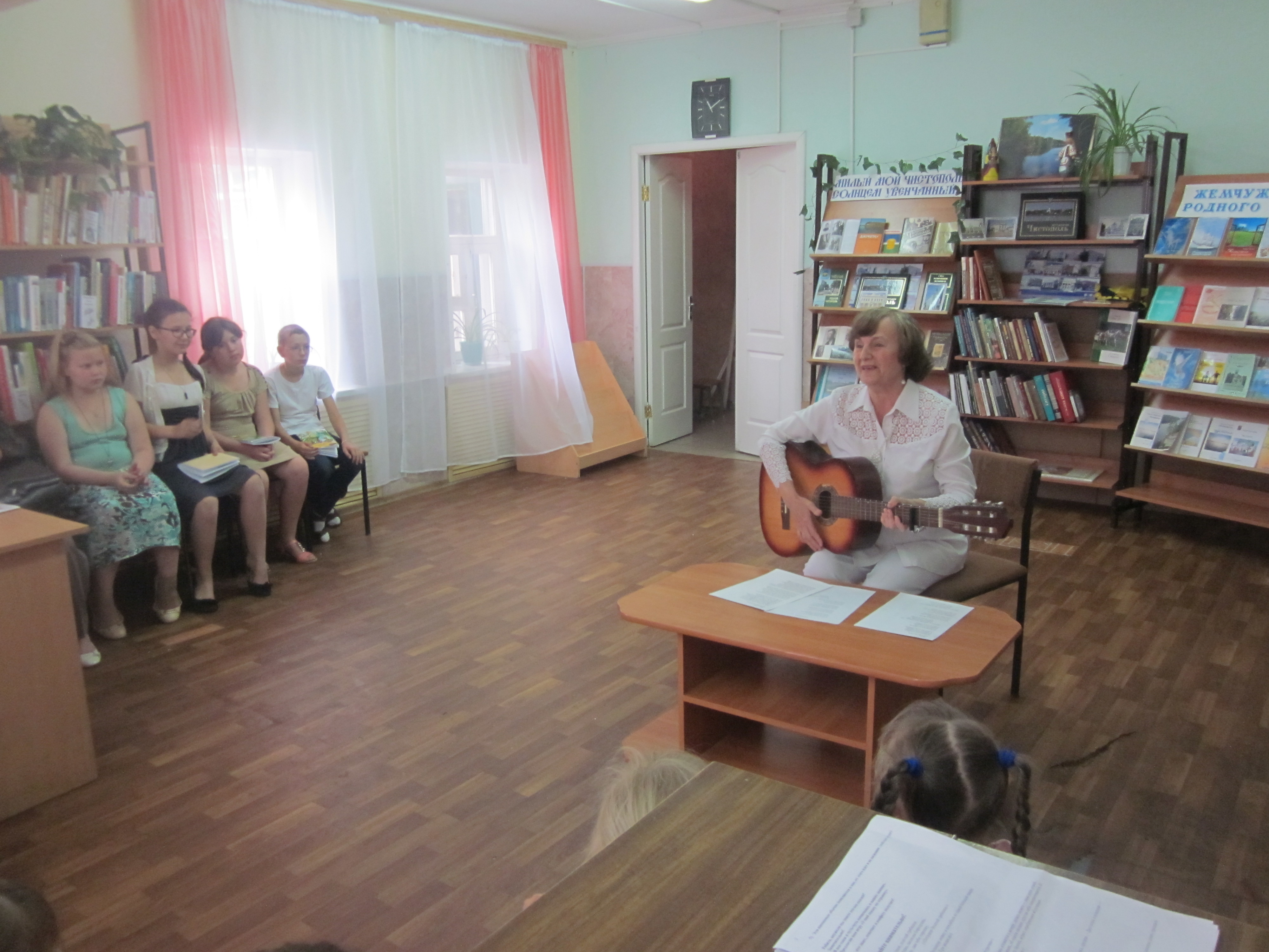 Чистопольские поэты: Владимир Белов, Наталья Пасмурова, Марина Архангельская , Рифкат Гардиев, Мира Максимова, Наталья Курнавенкова, Ольга Видяйкина, Валентина Солдатова – восемь авторов из 20, читали свои стихи из книги для юных слушателей. Валентина Солдатова исполнила две песенки для детей – авторскую «Про тучку» и на стихи Татьяны Вотиновой «Лето». Подготовились к презентации, выучили стихи из сборника дети постарше: РамильХуснутдинов, Екатерина Донскова, Карина Киселёва, Агния Кушникова. Читали дети красиво, выразительно и им были вручёны новая книга и памятный подарок. Сотрудники Детской библиотеки провели с ребятками сказочную викторину, самые активные так же заработали призы. А издала эту замечательную, иллюстрированную цветными картинками книжку Центральная библиотека на деньги Гранта.