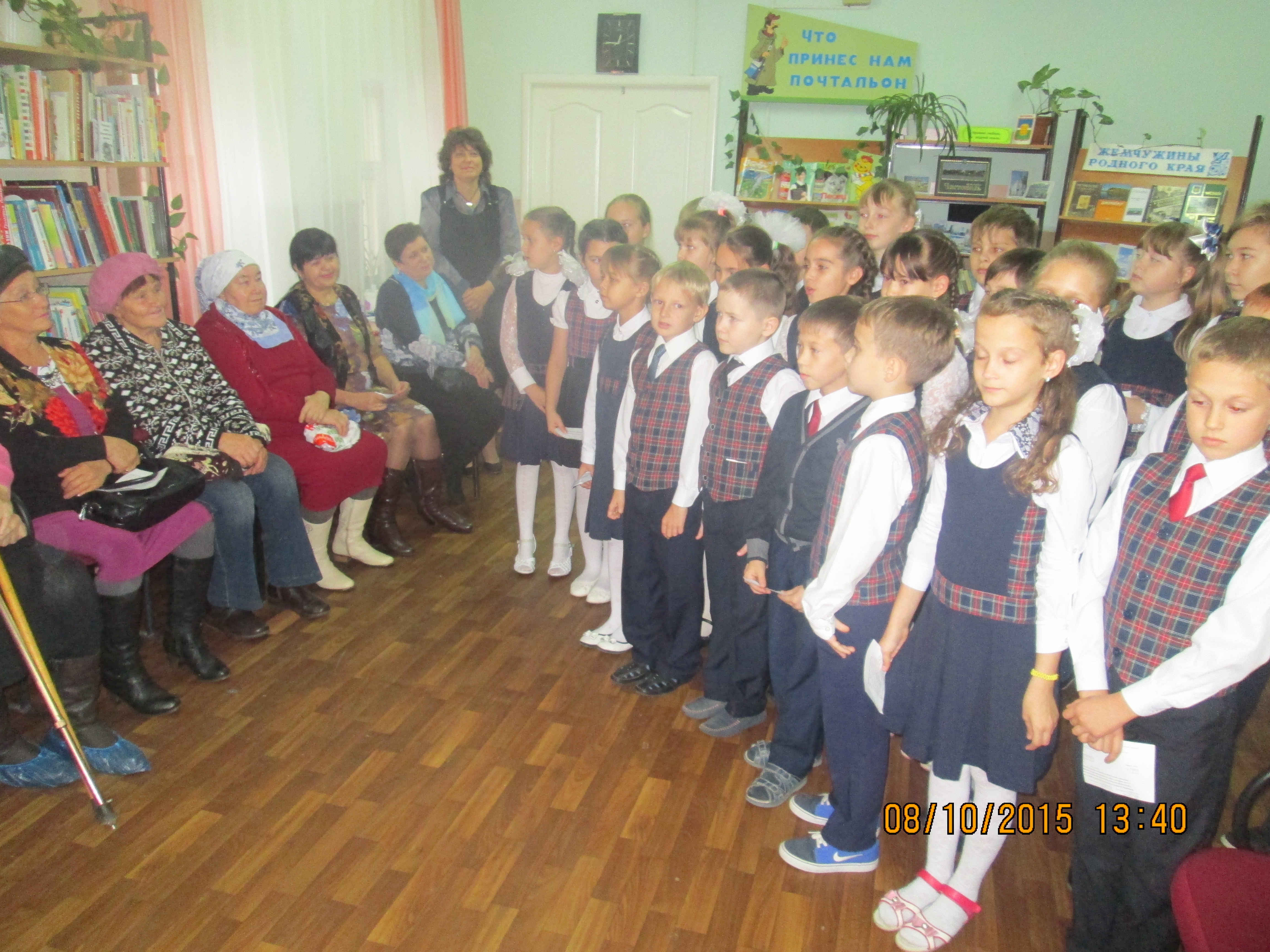 В осеннем календаре есть особенная дата, когда сердце переполняется чувством глубокой признательности и любви – это Международный день пожилых людей. В Центральной детской библиотеке ко дню пожилых людей прошла веселая праздничная программа «День добра и уважения». Гостями библиотеки стали учащиеся 3Б класса МБОУ «Гимназия №3» (учитель начальных классов Семенова Татьяна Николаевна) со своими бабушками и дедушками. Внуки и бабушки обменялись шутливыми приветствиями, добрыми пожеланиями. Тепло и искренне приветствовали ребята дорогих бабушек и дедушек, читали им трогательные и добрые стихи, дружно исполняли песни. Энергичные и жизнерадостные бабушки рассказали о том, кем мечтали стать в детстве и кем стали, какую профессию выбрали, чем увлекались в детстве. А какие увлечённые натуры наши бабушки, сколько у них интересных занятий, о некоторых из них внуки даже и не подозревали! Говорили бабушки и о своих внуках, как они их любят, какими бы хотели видеть их в будущем.