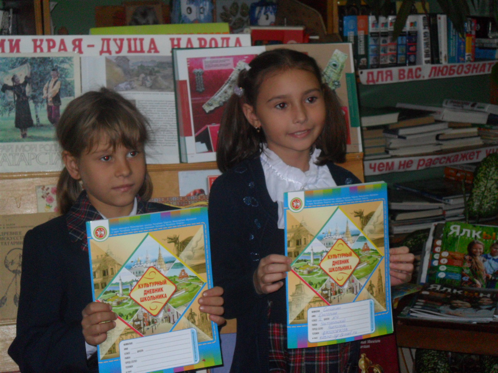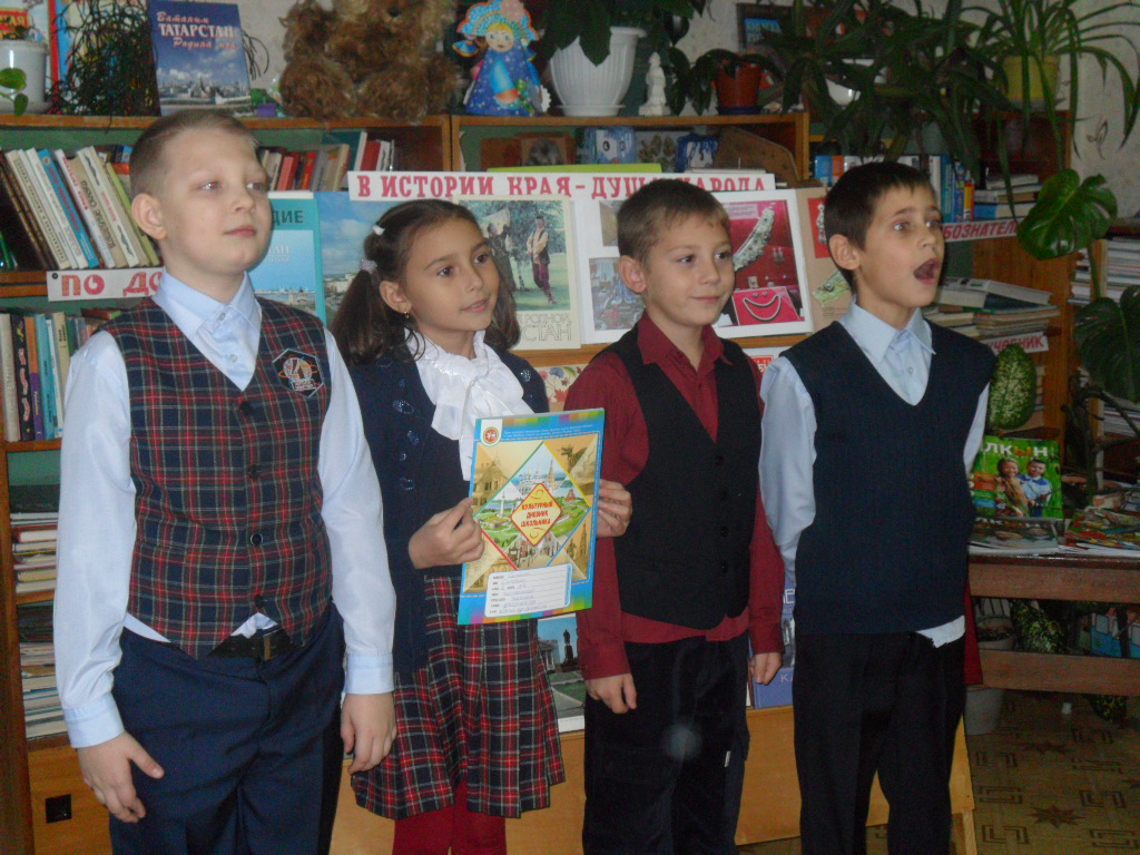 Учащиеся начальных классов школы № 4 получив «Культурные дневники школьника», отправились на экскурсию в городскую библиотеку № 4. Для них была подготовлена информационно – познавательная программа «В истории края – душа народа». Первая часть мероприятия была посвящена нашему городу – его истории, названию улиц, достопримечательностям. Дети с интересом слушали библиотекарей, сами рассказывали об улицах, на которых они живут. Большой интерес вызвал и просмотр видеоролика о городах Татарстана, из которого ребята получили информацию об исторических местах Татарстана, о древних городах, о видах искусства, познакомились с музеями республики, узнали о том, что такое кино и, что такое ремёсла. Информационная часть сопровождалась рассказами библиотекарей о книгах из краеведческого фонда библиотеки. Дети, с интересом воспринимая информацию, участвовали в диалоге с библиотекарями, отвечали на вопросы краеведческой викторины и сами задавали вопросы.