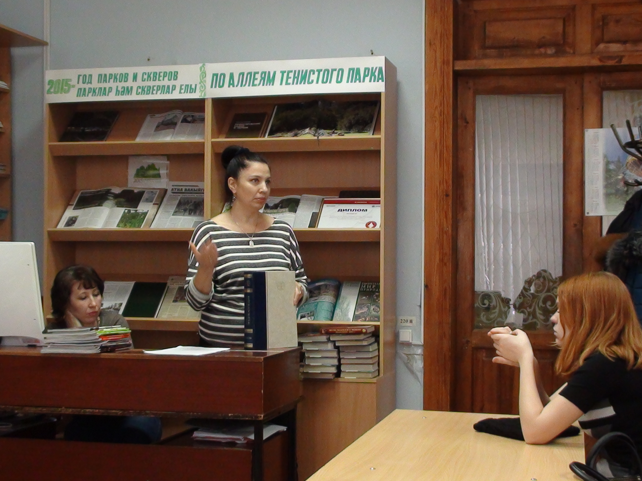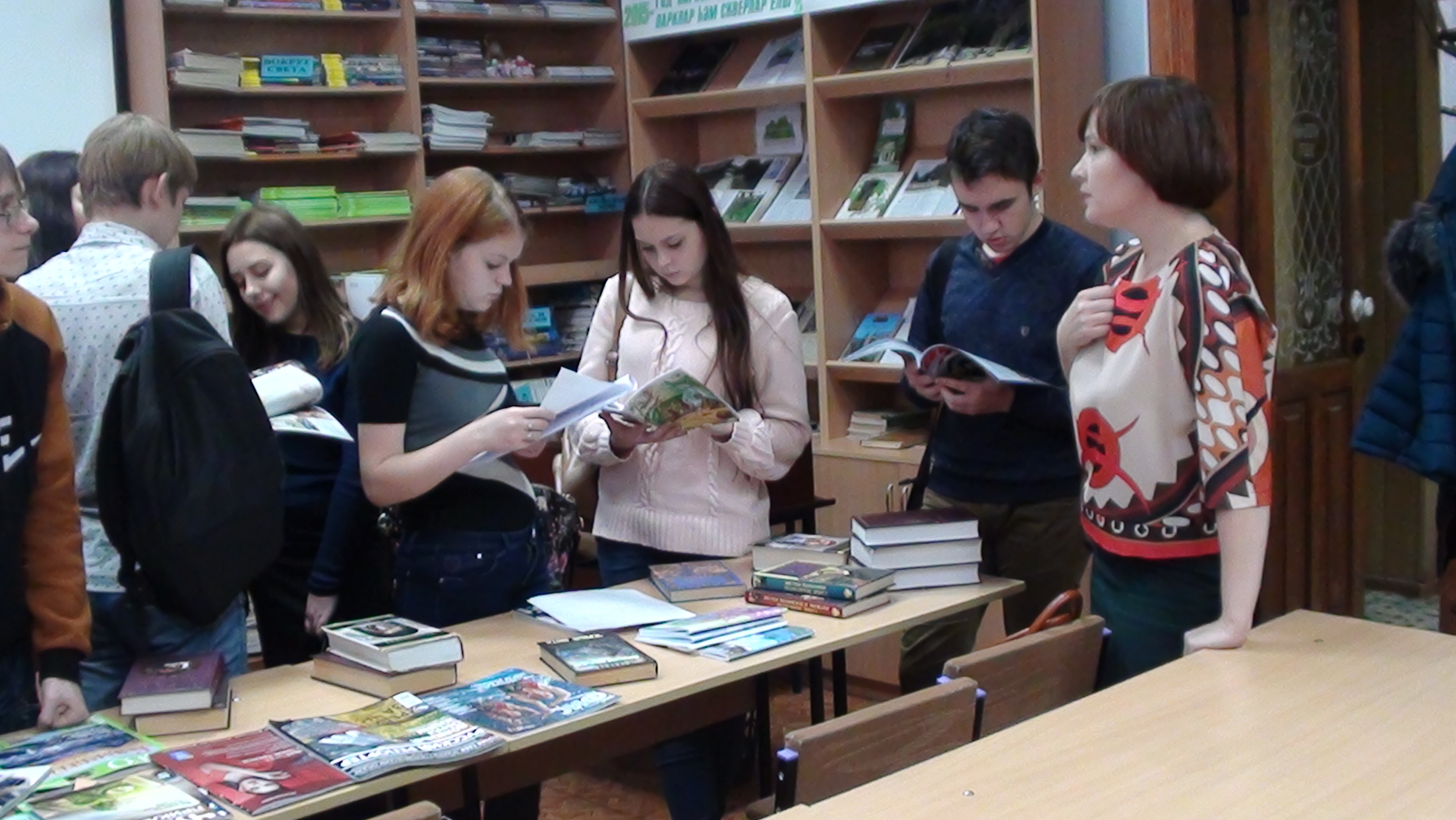 11 ноября в Центральной библиотеке для студентов колледжа КФУ прошла экскурсия. Зав. отделом обслуживания Гафурова Л.Ф. познакомила ребят с историей библиотеки, которой в 2016 году исполнится 140 лет, рассказала об основных направлениях деятельности подразделений библиотеки, показала художественную литературу, серии книг которые пользуются большим спросом у читателей: «Золотой фонд мировой классики», «Русская классика», «Шедевры фантастики», серия книг «Сталкер» продолжающая идею компьютерной игры «Сталкер» сделанной по мотивам фильма А.Тарковского.