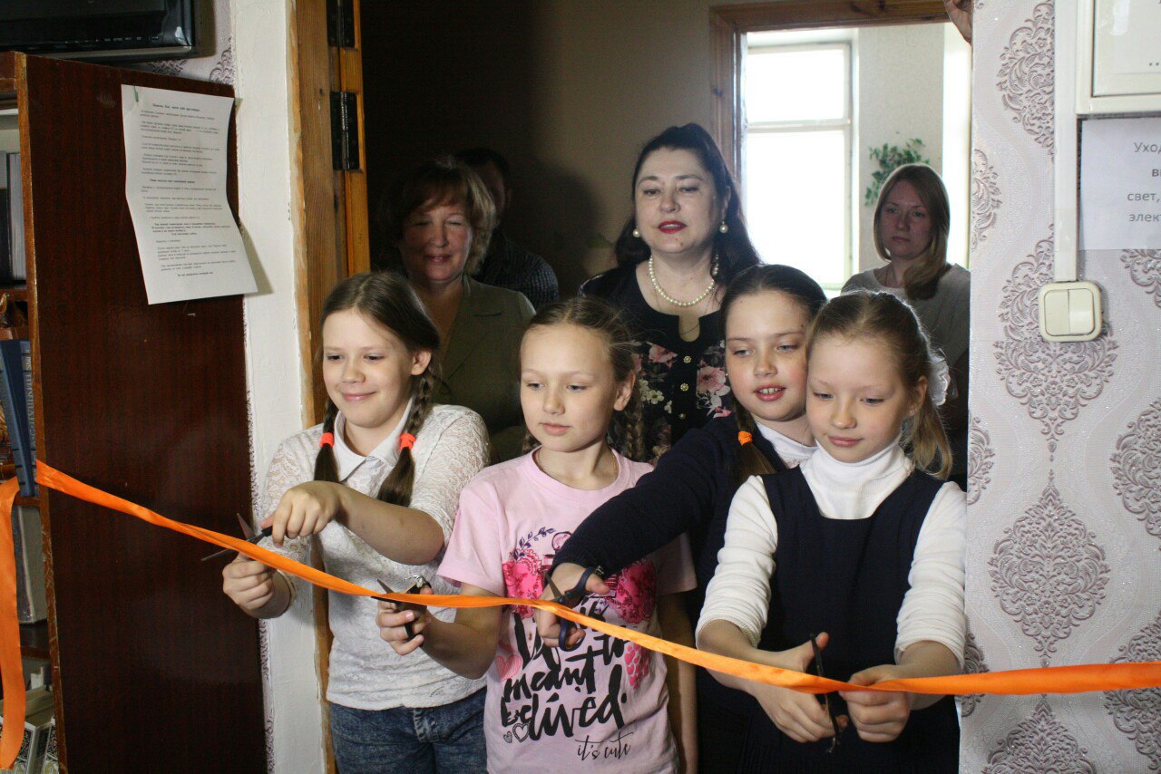 В открытии участвовали: директор библиотечной системы Курбатова Елена Михайловна, мамы учеников из 3 в – Базарова Анна, Карпова Евгения, дети из литературного клуба» Свеча»: Сергеева Влада, Карпова Арина, Базарова Полина, Назмутдинова Лилиана, члены лито «Ступени» и «Энжелер»: Марина Архангельская, Мавлида Закриевна Мифтахова, автор – исполнитель Тагир Мухаметов, библиотекарь школы № 4 Ольга Леонидовна Жильцова, Новиков Павел из Географического общества и др. Все дарили, что- то для библиотеки: книги, картину, календарь, игрушки. Я тоже приготовила для всех подарки: альбом, книги, джем, йогурты и др. На открытии разрезать ленту поручили детям. После речей и подарков, гости разместились за столом пить чай и слушать великолепное пение под гитару Тагира Мухаметова.