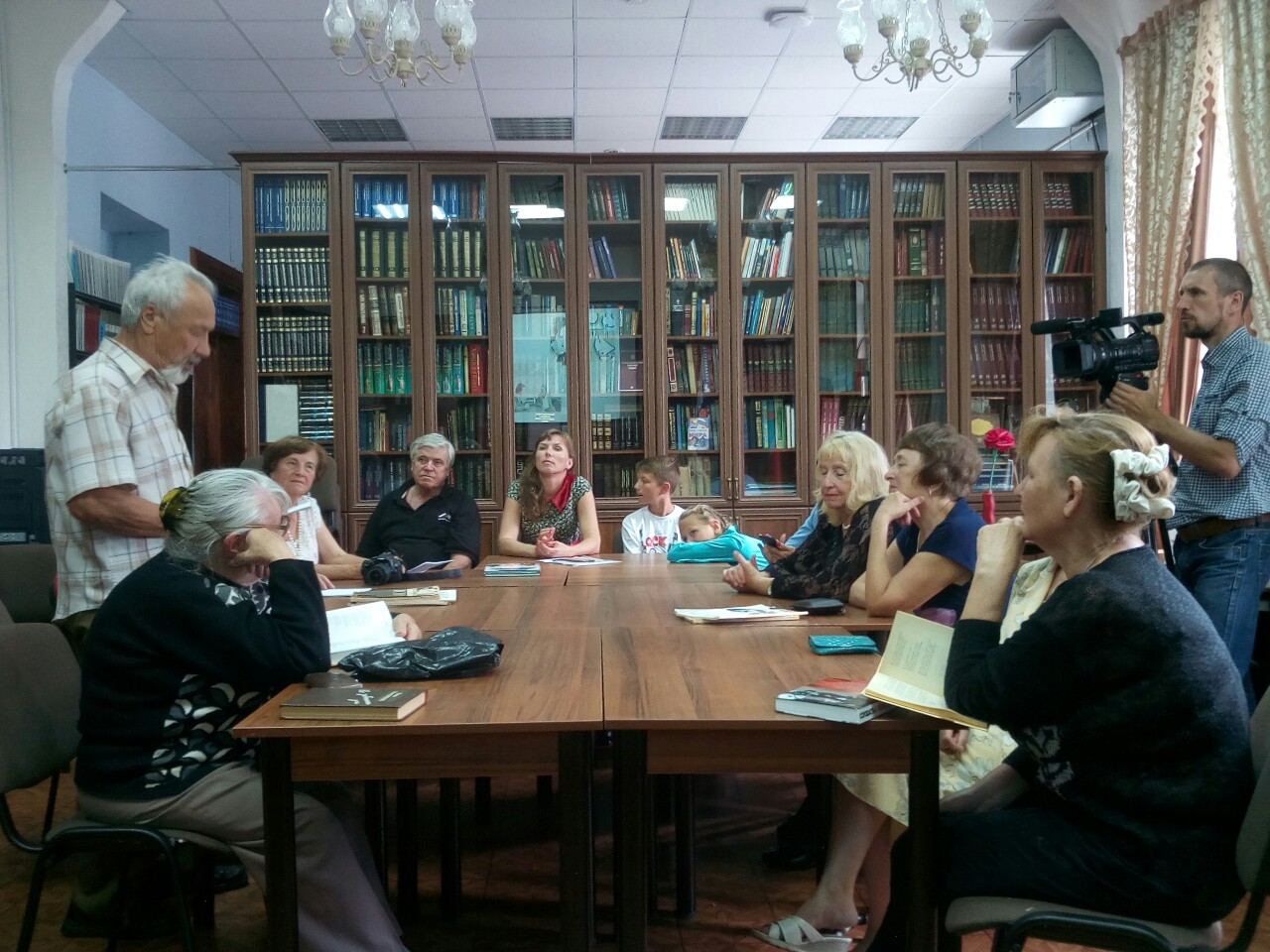 Когда проходил вечер, в Центральную библиотеку пришёл Юрий Терентьевич Старшинин из города Тетюши ( он путешествует на теплоходе). Талантливый человек из династии педагогов, всю жизнь посвятил работе в школе( работал учителем математики) Он подарил библиотеке 4 своих сборника стихов и рассказов, в которых в каждой строчке любовь к нашей родине. Вела вечер библиотекарь Елена Быкова.