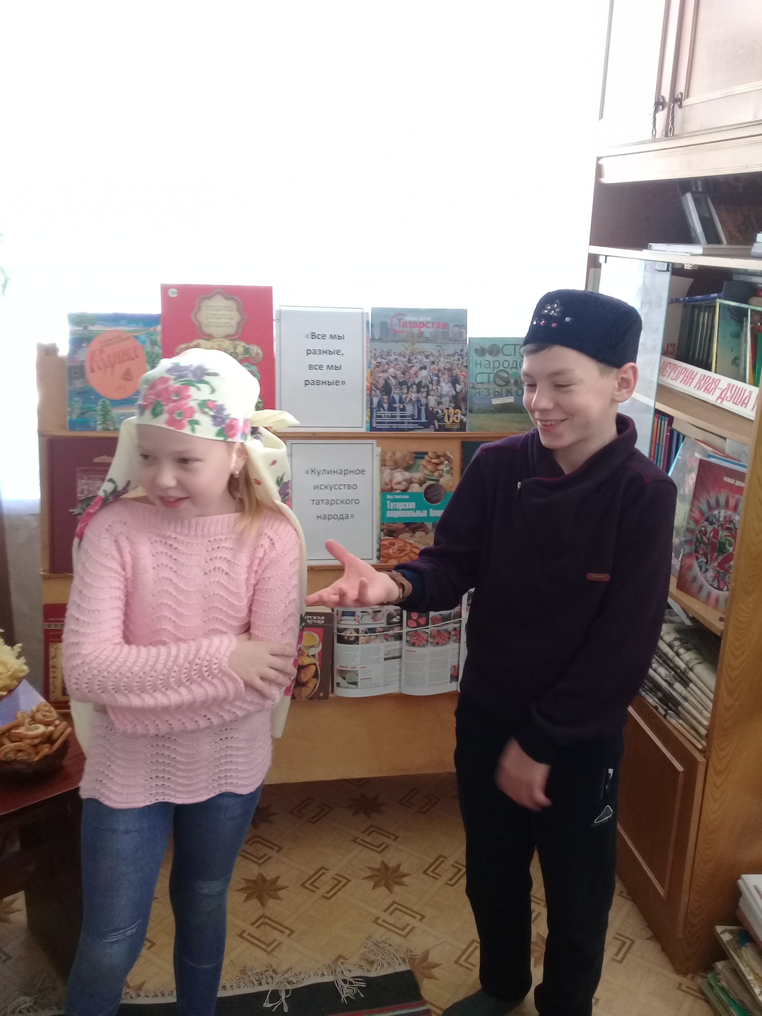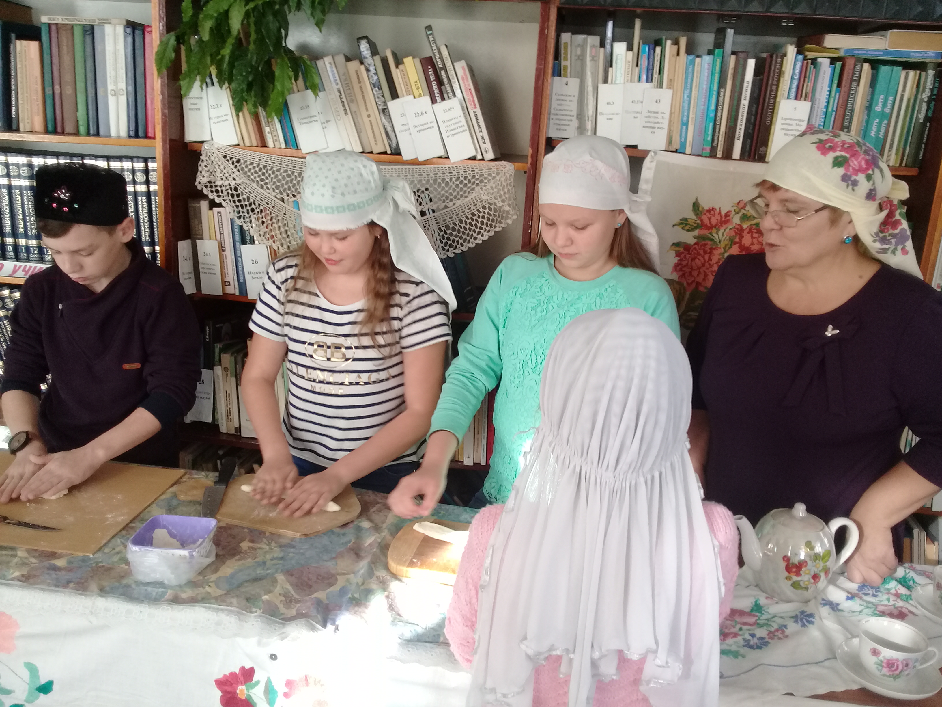 В рамках месячника «Татарской культуры» в городской библиотеки филиал № 4 состоялся информационно – познавательный час «Кулинарное искусство татарского народа», в котором приняли участие активные читатели библиотеки. Участвуя в конкурсах «Тюбетейка», «Загадки бабушкиного сундука» и «Кулинарный поединок» , читая стихи татарских поэтов, исполняя татарские песни и пляски, присутствующие — взрослые вспомнили, а подростки узнали, о традициях, обрядах и обычаях татарского народа. Состоялся мастер- класс по изготовлению татарской лапши и фигурок из теста. Закончилось мероприятие чаепитием с татарскими сладостями.