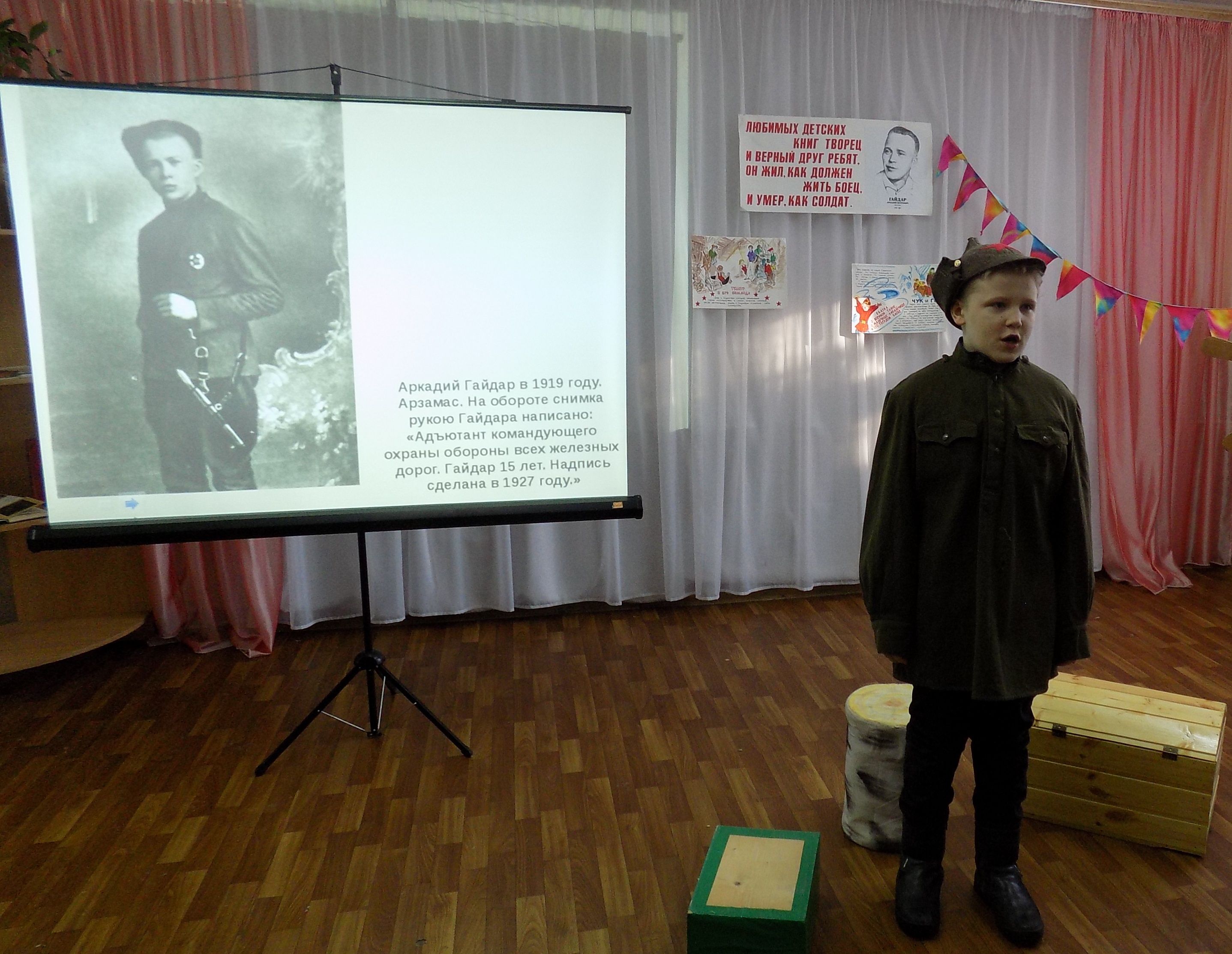 К 115-летнему юбилею со дня рождения Аркадия Петровича Гайдара в Центральной детской библиотеке с 14 — 25 января 2019 г. прошла акция «Читаем Гайдара». Библиотека пригласила школьников школы №16 в рамках акции стать участниками мероприятий, посвященных жизни и творчеству этого талантливого писателя.Внимание постоянных читателей библиотеки привлекли книжные выставки «Всадник, скачущий впереди», « Читаем Гайдара», у которых проводились беседы и обзоры литературы. Для младших школьников проводились громкие чтения повестей и рассказов писателя. Для учащихся 3-4 классов было подготовлено литературное путешествие по книгам Гайдара «Тепло Гайдаровских книг». Ребята не только слушали рассказ библиотекаря Хамадиевой И.А. о героической судьбе Гайдара, его книгах, но и сами рассказывали о прочитанном, делились впечатлениями. Рассказ библиотекаря сопровождался презентацией, звучали песни «Гайдар шагает впереди», «Салют Гайдару!». В завершение встречи ребята пришли к выводу, что книги Гайдара живут и поныне и учат нас дружбе, доброте и верности. В продолжение знакомства с книгами Гайдара была проведена викторина по прочитанным детьми рассказам и повестям «Тимур и его команда», «Военная тайна», «Чук и Гек», «Голубая чашка». Викторина помогла детям вспомнить самые забавные эпизоды из рассказов, ближе познакомиться с героями. Завершилась акция конкурсом инсценировок среди 3-4 классов по книгам « Тимур и его команда», « РВС», « Горячий камень». Книги Гайдара живут, и дети никогда не расстанутся с ними. В ходе акции было выдано 86 экземпляров произведений А.П.Гайдара и книг о нем. Хочется надеяться, что данное мероприятие не прошло бесследно. Ведь сегодня очень важно сохранить память о Гайдаре для будущих поколений, сделать так, чтоб его произведения читали и любили. Всего в Акции «Читаем Гайдара» приняло участие более 100 человек.