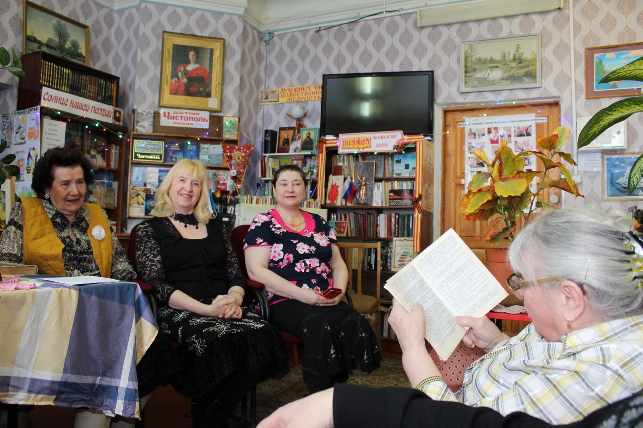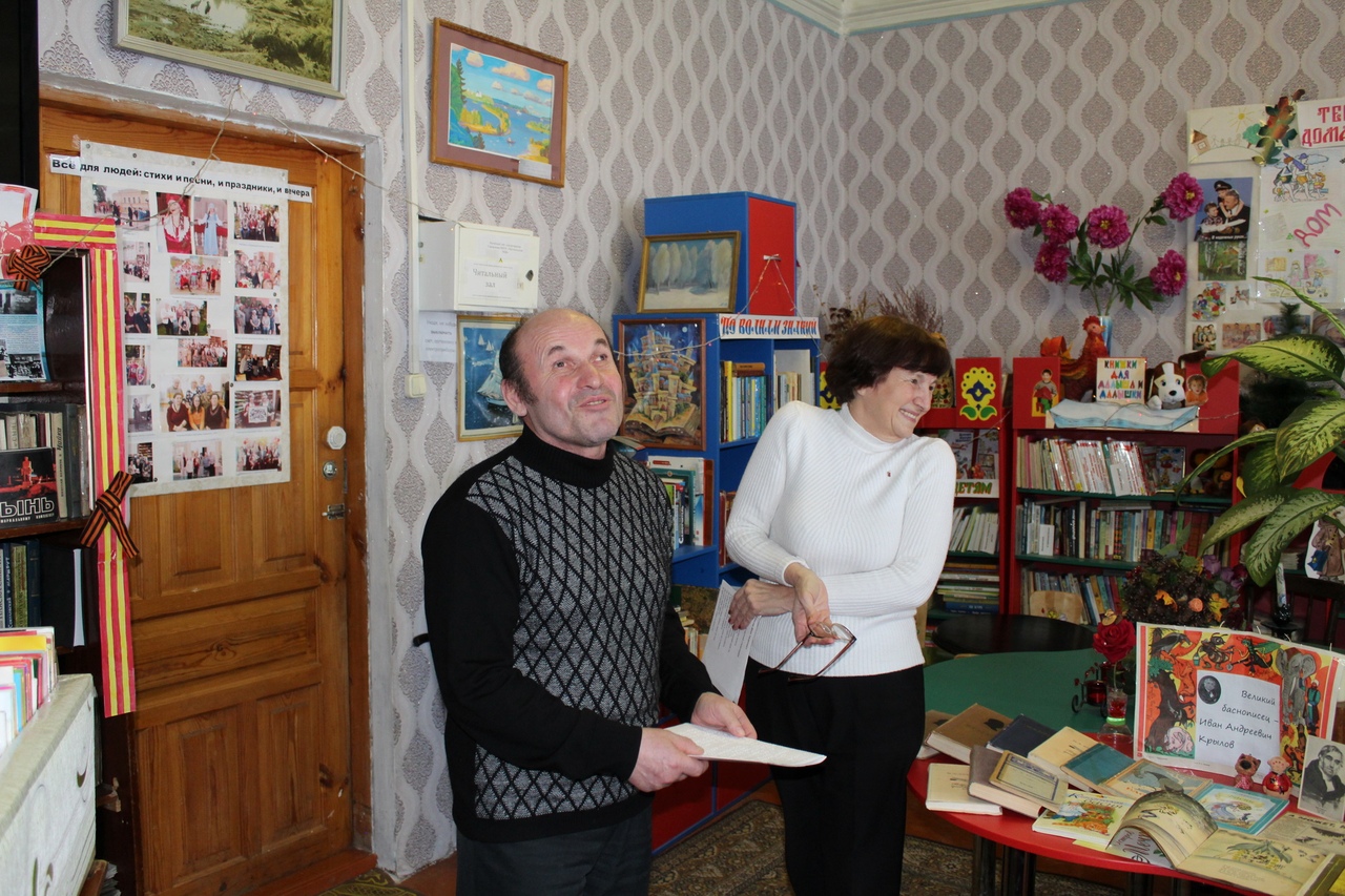 В городской библиотеке — филиале № 7 прошло заседание лито «Ступени». Тема заседания была посвящена 250 – летнему юбилею великого баснописца Ивана Андреевича Крылова. Библиотекарь Елена Быкова провела обзор книжной выставки. С творческой биографией Крылова всех познакомила Мира Ивановна Максимова, она так же читала басни разных авторов. Басню «Ворона и лисица» инсценировали Наталья Шустова и Марина Архангельская. Они так же рассказали о чудачествах Ивана Андреевича. Басни читали Валентина Солдатова, Рифкат Гардиев, Елена Быкова, Валентина Галлямова. Во второй части заседания басни собственного сочинения читали Рифкат Гардиев и Сергей Стариков. Сергей Михайлович в предверии весны подарил всем женщинам белые розы. Состоялось традиционное чаепитие.