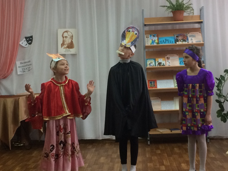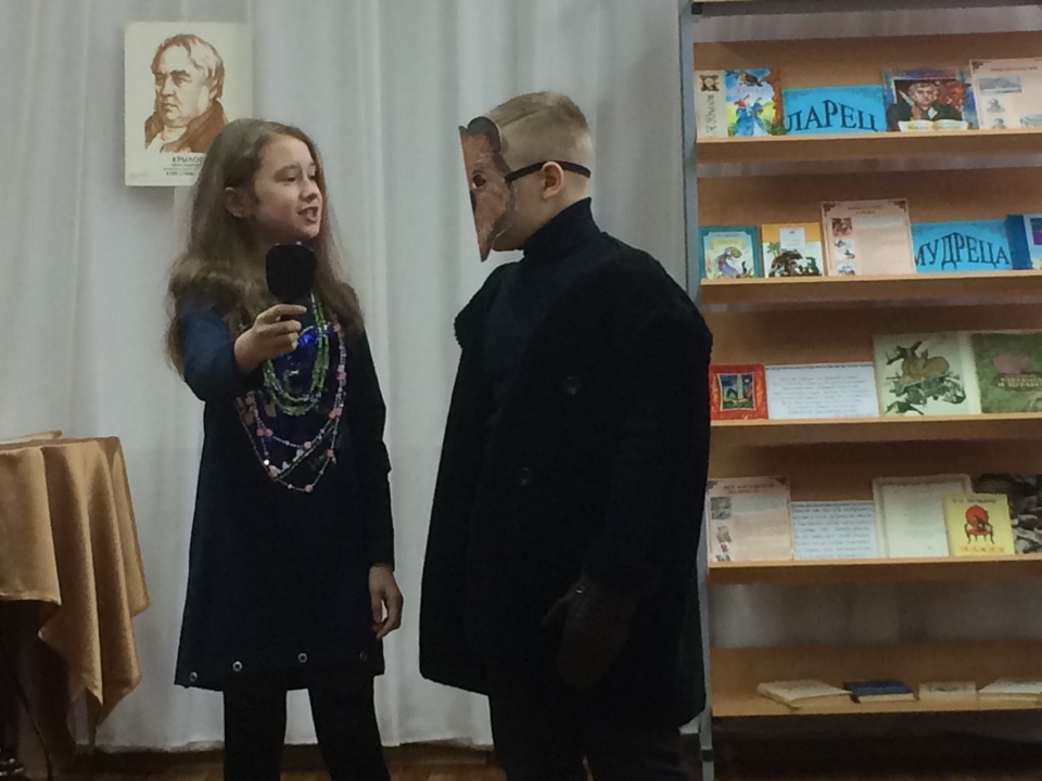 В дни школьных каникул в Центральной детской библиотеке прошел конкурс театральных зарисовок «Театр Крылова». Конкурс проводился в рамках Года театра в России и в связи с 250-летием со дня рождения И.А.Крылова. Мудрые басни Крылова учат нас быть правдивыми, добрыми, бескорыстными, благородными, совестливыми, справедливыми. Они призывают нас не ставить себя выше других, совершать добрые поступки, полезные дела, любить Родину. Конкурс был направлен на популяризацию литературного наследия баснописца, на поддержку и развитие творчества детей средствами театрального искусства. Проводился конкурс по двум номинациям «Лучшая инсценировка басни», «Лучшая семейная инсценировка». Учащиеся гимназии №1, СОШ №1, №4, читатели городского филиала №7, Чувашско – Елтанской сельской библиотеки №33, Данауровской сельской библиотеки №11 приготовили инсценировки басен И.Крылова и представили их на суд строгого жюри. Ребята инсценировали самые известные басни: «Стрекоза и муравей», «Демьянова уха», «Квартет», «Волк и кот», «Ворона и лисица», «Зеркало и обезьяна», «Любопытный», «Две собаки». Юные актеры очень старались выступить как можно лучше, чтобы набрать максимальное количество баллов и занять первое место. Жюри оценивало выступление по следующим критериям: знание текста, соответствие условиям конкурса (должна быть именно инсценировка басни), выразительность и артистичность. Во время выступления были использованы: музыкальное сопровождение, декорации, костюмы, реквизит, соответствующие содержанию исполняемого произведения. Все участники показали яркие и эмоциональные выступления.