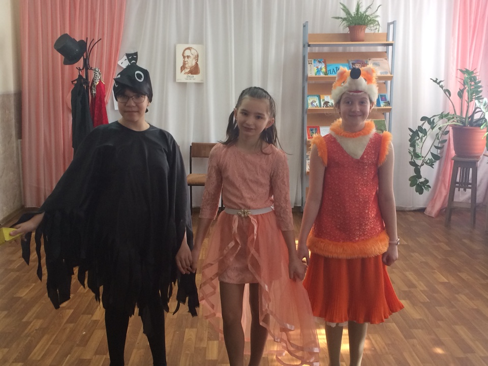 3 место – Милагина Милана, Садрутдинова Лина,Полутяглова Регина. Донауровская сельская библиотека №11 (басня «Ворона и лисица»)