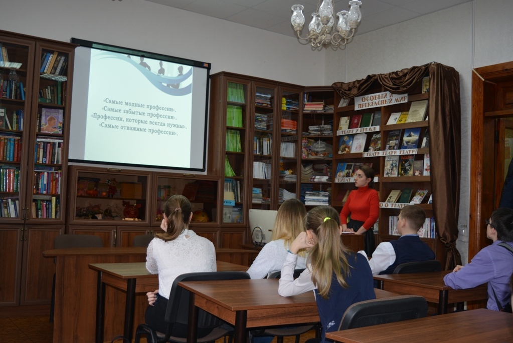 Удачно совершить этот шаг — одна из главных социальных задач молодёжи. В читальном зале Центральной библиотеки прошла информационная беседа — «Выбрать дорогу однажды». В гостях сегодня были учащиеся 7 -го класса СОШ №1. Ребят познакомили с разнообразным миром профессий, рассказали об особенностях некоторых из них, о выявлении способностей к той или иной деятельности. Также учащимся рассказали об учебных заведениях города Чистополя. В читальном зале библиотеки велась активная работа по обсуждению таких важных вопросов, как проектирование собственной судьбы, карьеры, будущего. Школьники активно включались в разговор, отвечая на вопросы, высказывая свое мнение.Вниманию учащихся была представлена слайд-презентация «Я выбираю профессию», о которых дети услышали в первый раз.