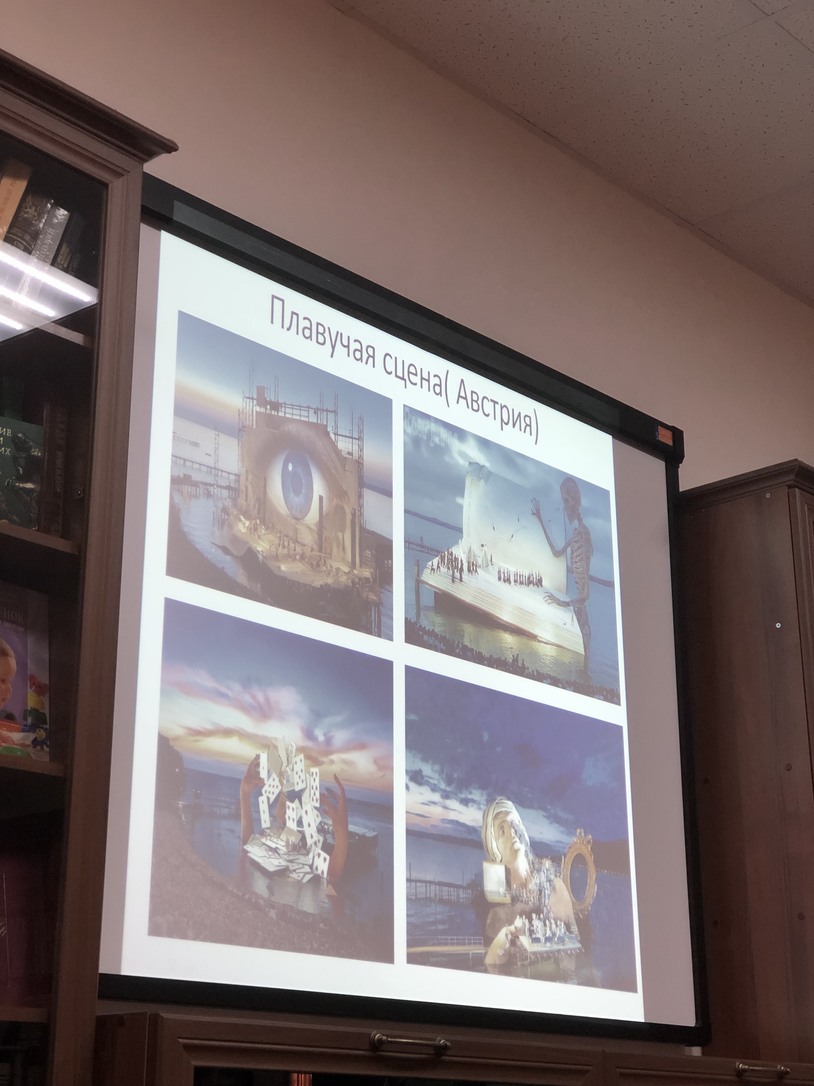 Гостей ждала невероятно интересная виртуальная экскурсия в самые разные уголки мира,ознакомление с самыми необычными театрами.Виртуально сегодня участники библионочи побывали в Московском государственном историко-этнографическом театре,петербургском театре «Особняк»,в Австрийском театре «Плавучая сцена»,во Вьетнамском театре кукол,Французском театре «Les passagers” и многих других.Гости с удовольствием отвечали на вопросы театральной викторины. А также был организован специальный показ пародийно-сатирического представления «Необыкновенный концерт» Театра кукол имени С. Образцова, спектакль поставленный Сергеем Образцовым и Семёном Самодуром в 1946 году.