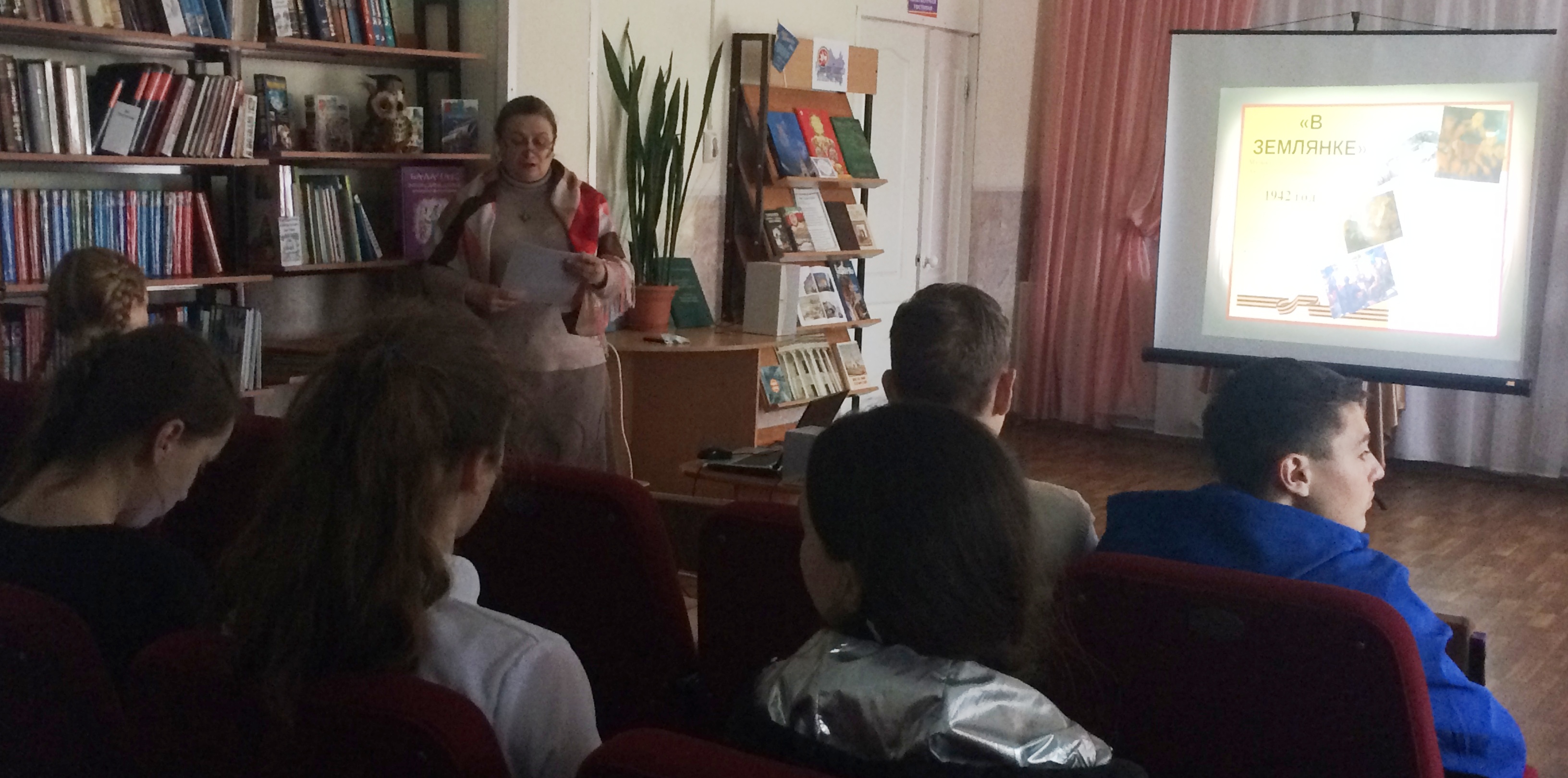 В Центральной детской библиотеке для учащихся 8Б класса СОШ № 16 была проведена литературно-музыкальная композиция «Нас песня вела к Победе», на которой звучали музыка и голоса той военной и послевоенной эпохи.
