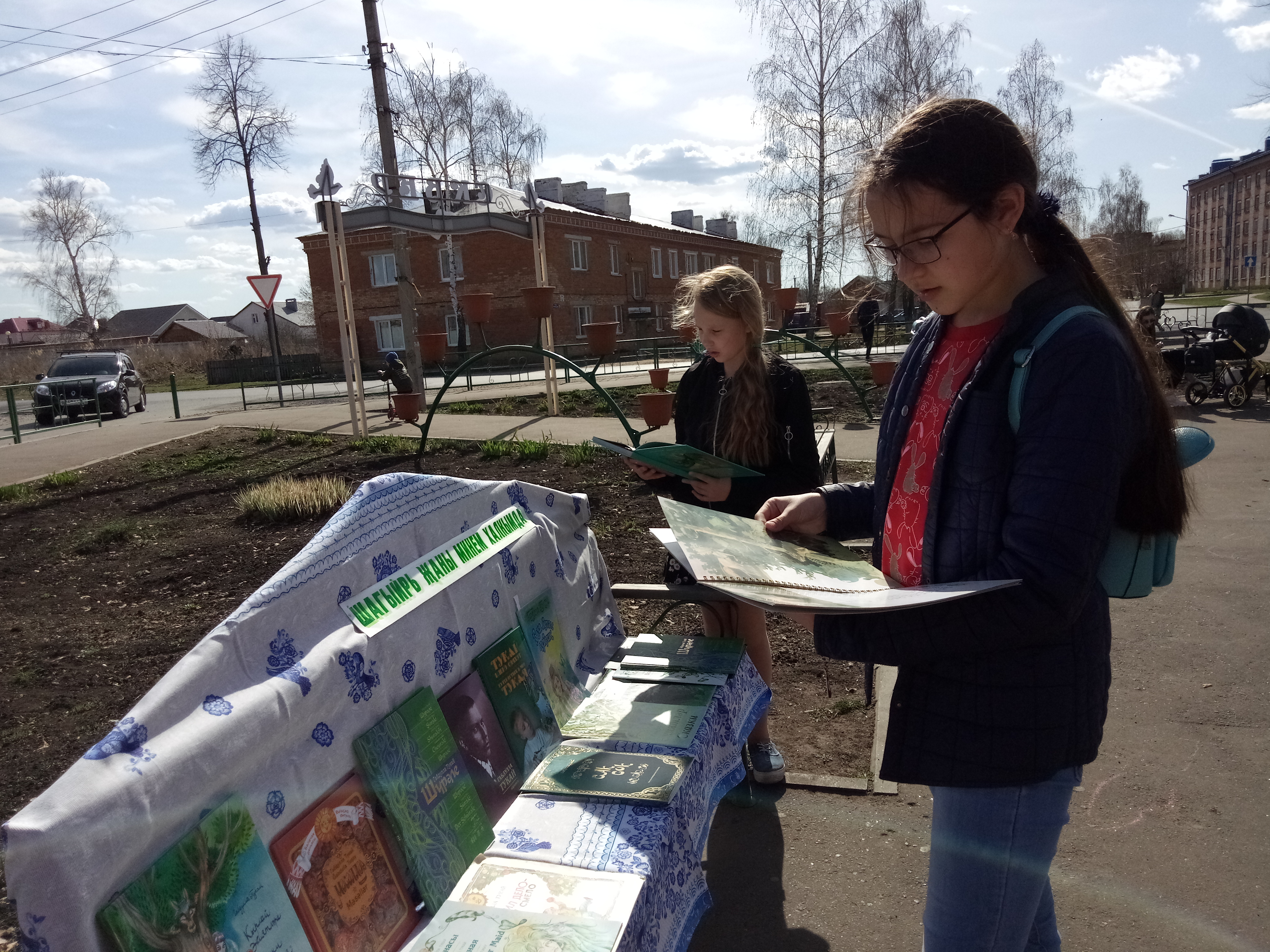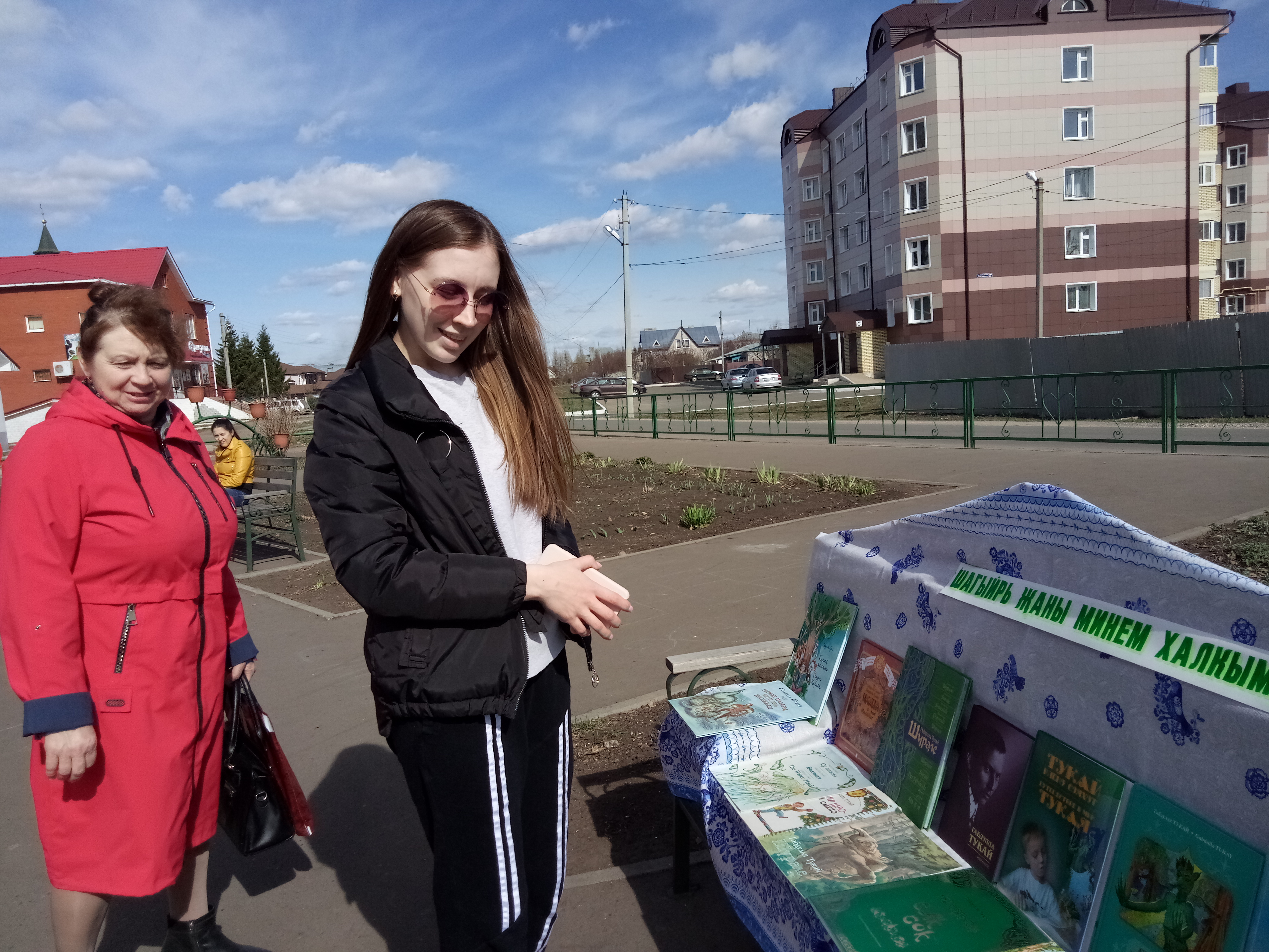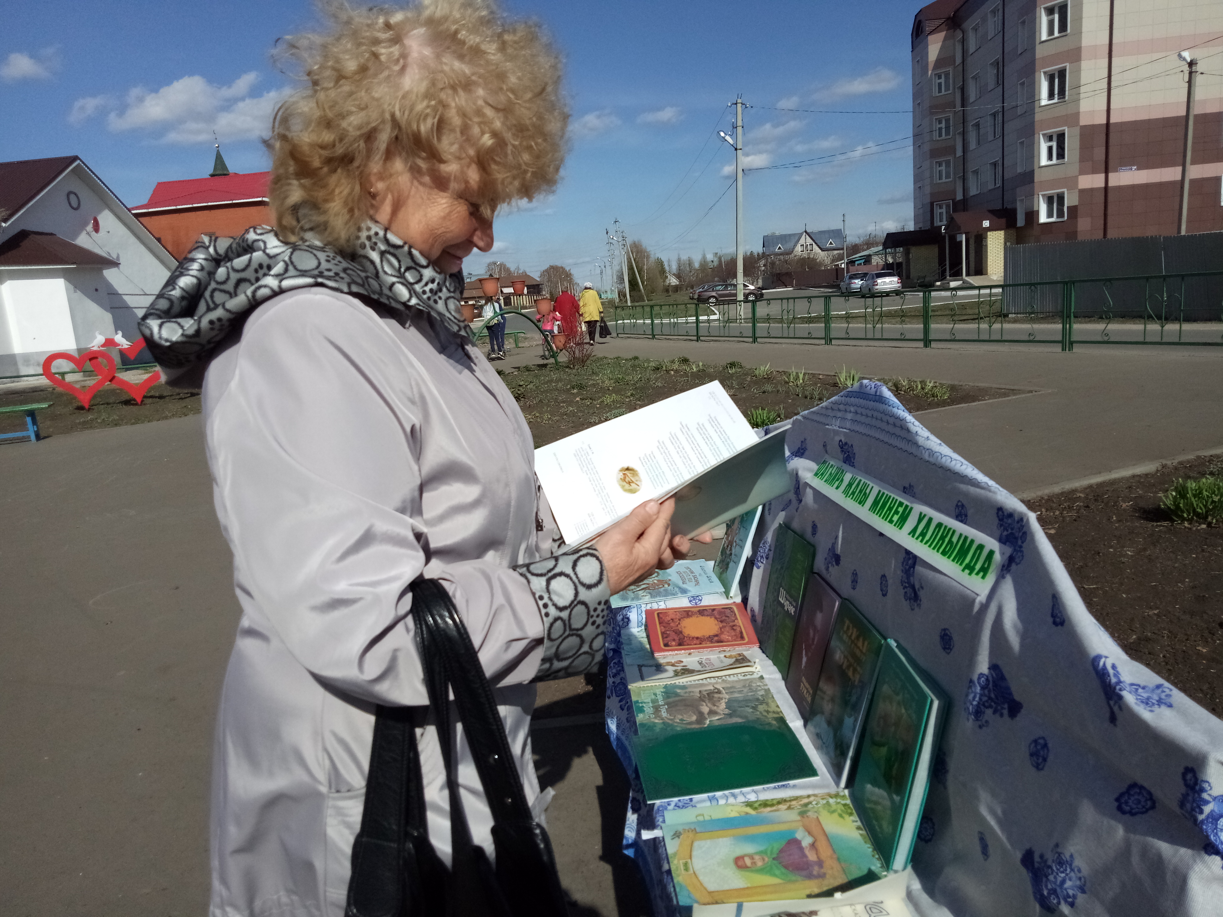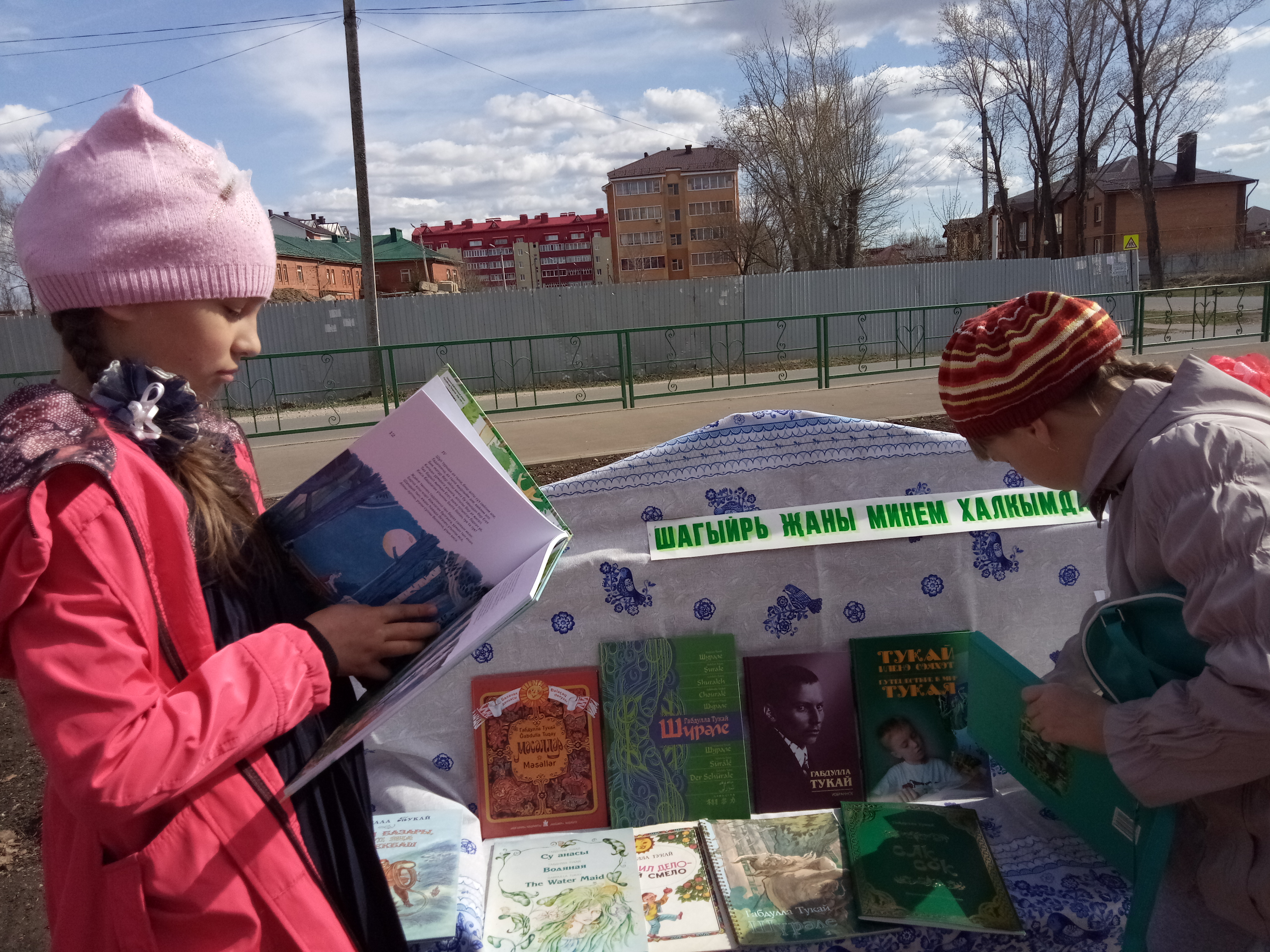В день рождения Г. Тукая сотрудники библиотеки филиал №4 пригласили жителей микрорайона «Мебельная фабрика» в сквер «Любви и согласия» на литературный дворик «Тукай булса татар мэнге яшэр». Здесь можно было познакомиться с творчеством Г. Тукая, так как его книги со стихотворениями, поэмами и сказками вновь и вновь не только радуют глаз своими красочными оформлениями , но и возвращают нас в волшебный мир сказочных героев поэта. Присутствующие рассматривали книги Г. Тукая, читали стихи, отвечали на вопросы литературной викторины, принимали участие в различных конкурсах , приятно удивив своими знаниями. Отрадно отметить, что люди любят и знают творчество Г. Тукая. Надеемся, что и в дальнейшим они будут изучать и воспевать богатое наследие нашего великого поэта.