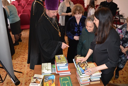 Ведущие праздника — сотрудники библиотеки рассказали об истории праздника, о первой печатной книге «Апостол», о роли православной книги, как источника нравственного и духовного совершенствования.