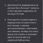 Длительность видеоролика не должна быть больше 1 минуты, а текст должен содержать не меньше 75 слов.