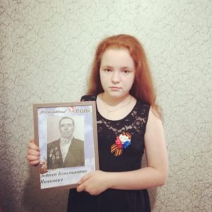 С июня по сентябрь 1941г был на лечении. В марте 1942г был ранен во второй раз. С войны вернулся 9 сентября 1945г. Воевал также и на финской войне с февраля по август 1940г. Мой прапрадедушка имел медали и ордена. К сожалению, он умер задолго до моего рождения в декабре 2004 года. Также два моих прапрадеда – Беляев Мотыгулла и Мухаметдияров Абулгасим погибли на войне, похоронены в братской могиле под Москвой. Их фотографий у меня нет. Я горжусь своими прапрадедами. В моей памяти останутся подвиг и мужество людей, которые прошли через все суровые будни войны. Вечная память героям, не вернувшимся с войны, об этом мы должны помнить всю жизнь.