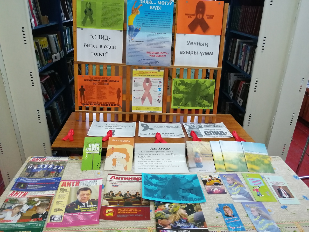 1 декабря Всемирный день борьбы со СПИДом. Эта дата ежегодно призывает всю мировую общественность не просто помнить об этой пока неизлечимой болезни, но и быть терпимым к тем, кто уже является переносчиком этого заболевания. И, главное, что должен для себя понять каждый из живущих на планете- следует понимать, что профилактика очень важна в борьбе за здоровье. К этому дню в Кзыл Яланской сельской библиотеке была проведена познавательная беседа «СПИД: билет в один конец». Целью мероприятия было- информирование о последствиях употребления наркотиков и их влияние на человека, о том, как можно заразиться и как от этого уберечься. Подростки узнали о том, что Всемирный День борьбы со СПИДом появился, чтобы привлечь внимание мировой общественности и просто людей к проблеме СПИДа, ценности человеческой жизни. Поведала юношеству об акции «Красная ленточка». Красная ленточка является символом борьбы со СПИДом. Красная ленточка — это символ памяти о людях, которых унес СПИД. Каждое третье воскресенье мая по решению Всемирной организации здравоохранения отмечается Международный день памяти умерших от СПИДа. В этот день миллионы людей во всех странах мира организуют различные мероприятия для того, чтобы почтить память умерших и дать возможность живым задуматься о том, что эпидемия СПИДа может коснуться каждого из нас.
