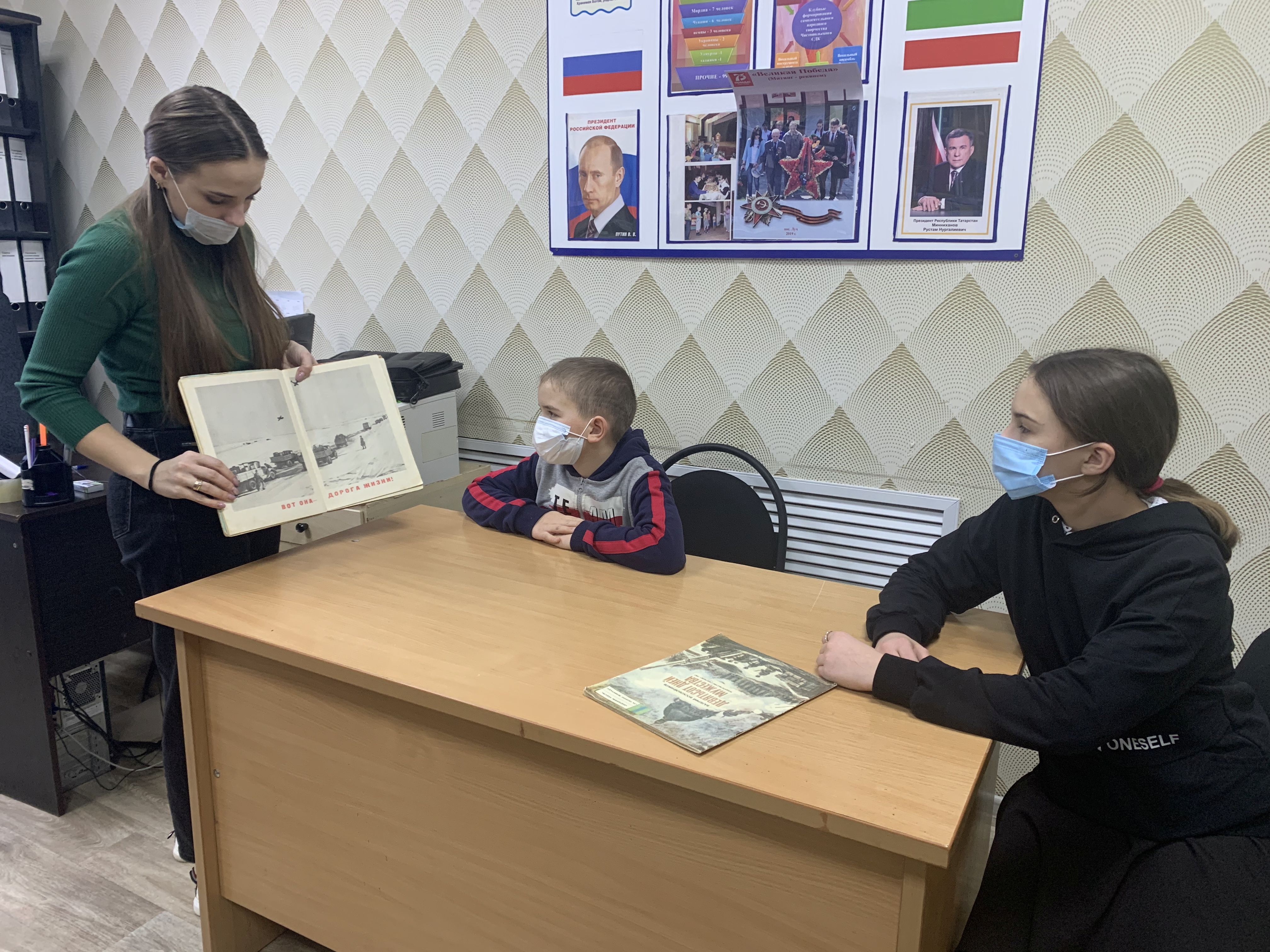 В ходе которого ребята ознакомились с книгой Н.Ходза «Дорога жизни», увидели фотографии которые изображены в книге.