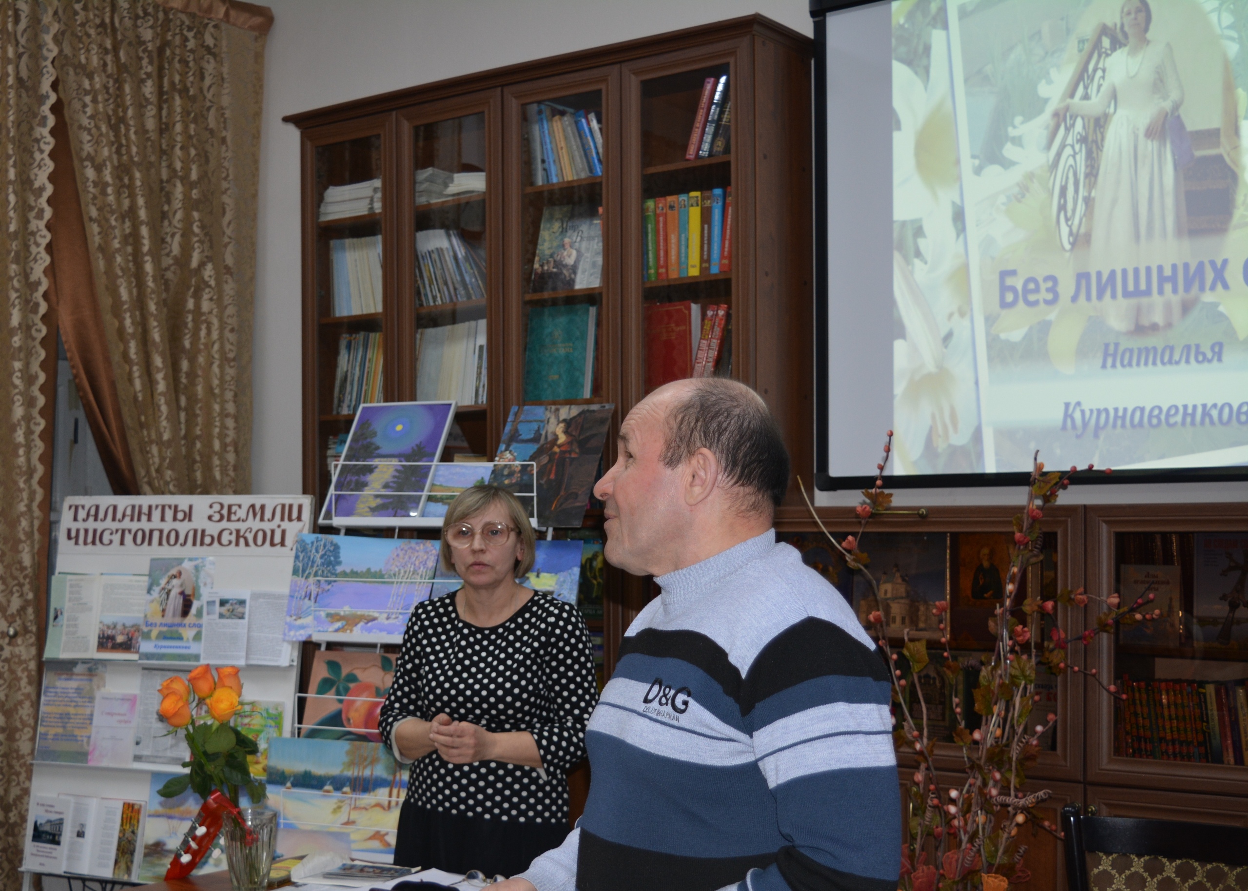 По мотивам сказки Натальи, Рифкат Гардиев написал басню и прочел ее. Валентина Солдатова исполнила песню на стихи Натальи Курнавенковой. Добрые пожелания в адрес Наташи прозвучали от от чистопольских поэтов, членов Лито «Ступени» Владимира Белова, Ольги Венидиктовой, Натальи Пасмуровой, Нины Борисовны Романовой. Директор библиотеки Курбатова Елена Михайловна подарила поэтессе два поэтических сборника: «Лирика о любви» и «Стихи Ларисы Рубальской».