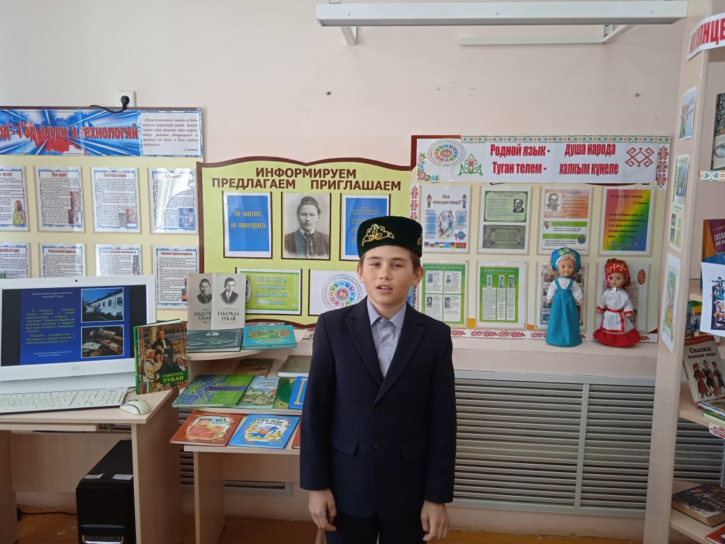 В Чув.Елтанской сельской библиотеке прошел литературное путешествие «Он — наш поэт, он наша гордость». Читатели познакомились с творчеством великого татарского поэта, посмотрев презентацию о поэте. Участвовали в викторине «Сказки Тукая». Выразительно читали стихи «Туган авыл», «Туган тел», «Эш беткэч уйнарга ярый», «Милли моннар». Также инсценировали «Бала белэн кубэлэк», «Су анасы». Мероприятие закончилось под хоровое исполнение песни Г.Тукая «Туган тел».