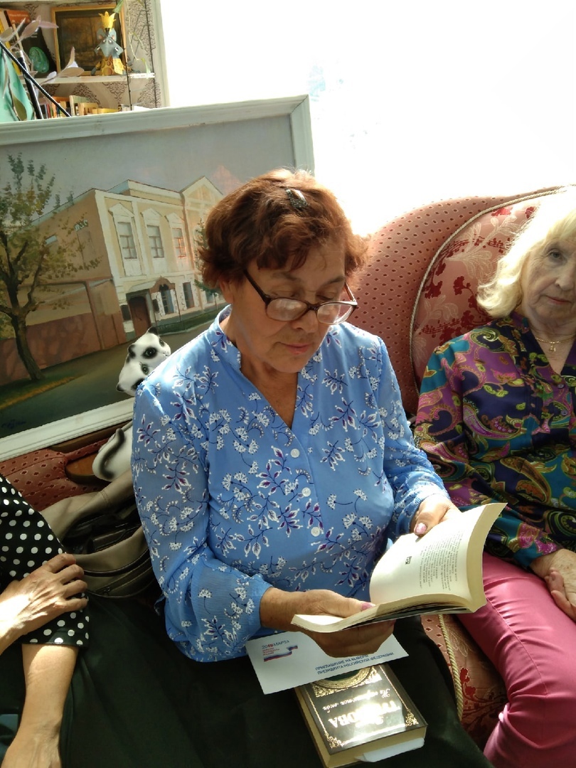 10 июня в городской библиотеке – филиале № 7 прошло заседание литературного объединения «Ступени». Заседание состояло из нескольких частей. В первой части чистопольские поэты отметили день рождение великого русского поэта А. С. Пушкина. Максимова М. И. и Курнавенкова Н. прочитали авторские произведения, посвященные великому поэту. Мира Ивановна показала раритетные издания с портретами Пушкина из личного архива. Прозвучали любимые произведения Пушкина в исполнении членов лито. Вторая часть была посвящена женской лирике. Ветеран педагогического труда Мира Ивановна рассказала о поэтах: Марине Цветаевой, Анне Ахматовой, Зинаиде Гиппиус, Белле Ахмадуллиной и др. Стихи Анны Ахматовой и Вероники Тушновой читала Алевтина Чумарова. Марина Архангельская прочитала стихи Беллы Ахмадуллиной. Ирина Андронова познакомила с современными женщинами – поэтами и прочитала несколько интересных стихотворений. Председатель лито «Ступени» Елена Быкова провела музыкальную викторину – « На чьи стихи?» и исполнила песню Юнны Мориц «Крыша, мальчик и сова». Авторские стихи о любви читал Леонид Васильевич. Третья часть называлась – «Молодое дарование». На заседание пришли учащиеся школы №4, которые перешли в 7 класс. Артуганова Екатерина неожиданно для себя стала писать небольшие рассказы. Екатерина прочитала два рассказа и получила одобрение и напутствие от читстопольских поэтов.