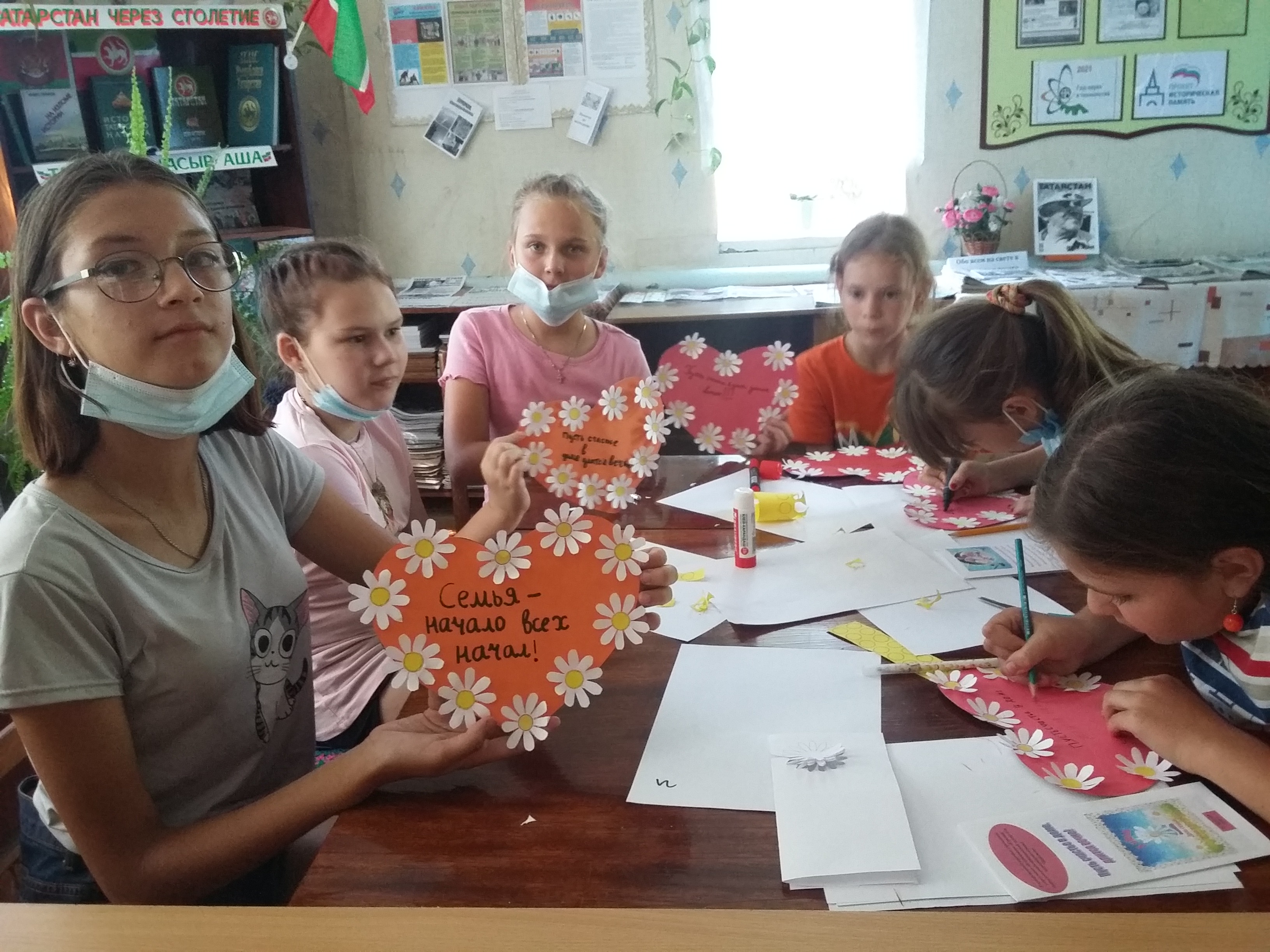 8 июля отмечается замечательный российский праздник – День семьи, любви и верности, приуроченный ко дню памяти святых князя Петра и его жены Февронии, покровительствующих семье и браку в православной традиции. Этой дате посвящен час общения в библиотеке «День семьи, любви и верности!». Читатели познакомились с историей праздника, с интересом прослушали легенду о православных супругах Петре и Февронии, ставшими образцами супружеской верности, взаимной любви и семейного счастья. Они узнали, почему ромашка является символом этого праздника. Читатели вспомнили поговорки и пословицы о семье, а также поделились традициями, существующими в их семье. Библиотекарь познакомила с книжной выставкой «Семья – источник вдохновенья», на которой представлены произведения классиков литературы о семейных ценностях. Завершилось мероприятие творческим мастер-классом по изготовлению символа праздника – ромашки в подарок своим родным и близким.