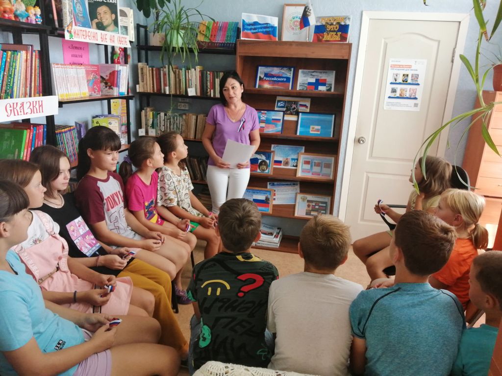 22 августа День Российского флага. Библиотекарем Малотолкишской сельской библиотеки был проведён исторический экскурс » Истории Российского флага» приуроченный к этой дате. Ребята узнали о трёхсотлетней истории главного официального символа страны. Юным читателям интересно было узнать, что первые пятьсот лет своей истории Россия не имела ни герба, ни флага, ни гимна, а роль флага в средние века исполняла чудотворная икона с которой шли в бой княжеские дружины. Из рассказа библиотекаря дети познакомились с историей появления первого триколора, поднятого на корабле царя Алексея Михайловича » Орёл». Затем библиотекарь подробно остановилась на правлении Петра 1, который ввёл Андреевский флаг в военно — морском флоте. При этом бело — синий — красный флаг остался символом государства. Вместе с детьми поговорили о толерантности к представителями других национальностей и о том, что в каждой стране существует триединство символов : герб, флаг, гимн. Мероприятие закончилось викториной » государственная символика России». Библиотекарем была проведена патриотическая акция, раздача ленточек — триколор. Дети поздравили жителей села с праздником российского флага подарив им ленточки.