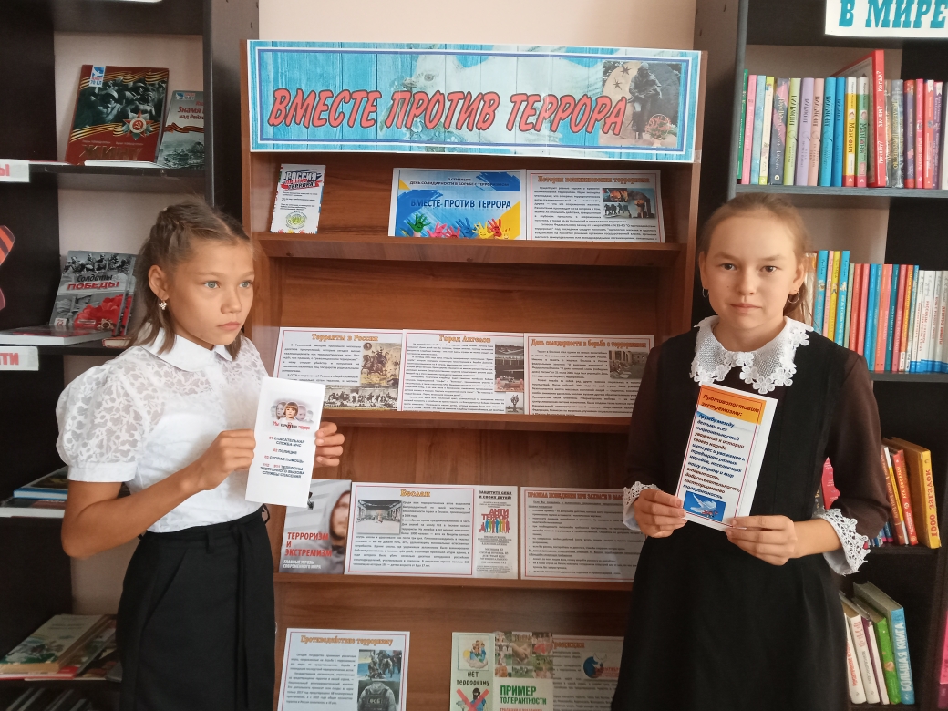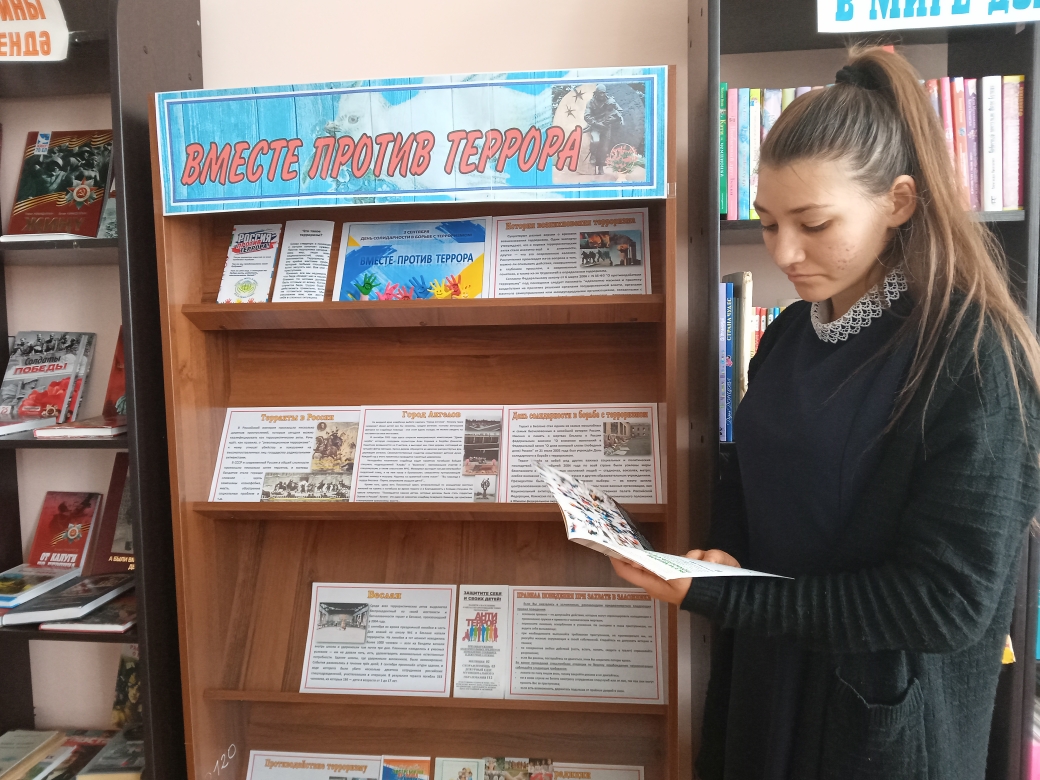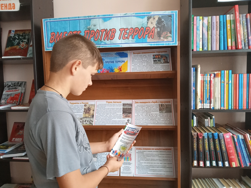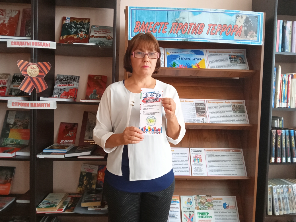 Ежегодно 3 сентября в России отмечается особая дата — День солидарности в борьбе с терроризмом. Эта дата неразрывно связана с трагическими событиями, произошедшими в г. Беслан с 1 по 3 сентября 2004 года. В этот день россияне с горечью вспоминают людей погибших от рук террористов. Чувашско-Елтанская сельская библиотека провела час памяти «Эхо Бесланской трагедии». Методист рассказала о том, что терроризм — это угроза человечеству, это жестокое преступление, которая несет с собой страдание, боль, гибель невинных людей. Особое внимание было уделено страшной трагедии Беслана. Также ребята ознакомились правилами предупреждения и поведения в случае угрозы теракта. К мероприятию была оформлена тематическая информационная выставка «Вместе против террора». В заключении мероприятия ребята получили буклеты «Мир без насилия», «Вместе против террора». Час памяти завершился минутой молчания по погибшим в Беслане.