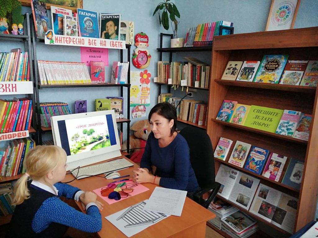 6 сентября библиотекарем Малотолкишской сельской была проведена беседа с учащейся начальной школы «Сделаем мир добрее». Библиотекарь рассказала о доброте и вежливости, о том, каким должен быть человек, чтобы окружающим было приятно с ним общаться. На основе художественных произведений, и на примере жизни разных людей, поговорили о главных моральных понятиях в жизни — добре и зле, умении сострадать, протянуть руку помощи нуждающимся, быть милосердным по отношению к людям. Учащаяся вспомнила пословицы и поговорки о доброте, приняла участие в игре — конкурсе «Цветок доброты» в лепестки которого она вписала добрые слова, которые помогут окружающим поднять настроение, построила «Лестницу ценностей» на каждой ступеньке написала слова характеризующие качества доброго человека. В завершении беседы библиотекарь зачитала притчу «Добро и зло» и представила книги на книжной выставке сказав, что прочтя эти книги ты станешь доброй, милосердной и справедливой. В напутствие пожелала учащейся добра и счастья, никогда не забывать о том, что доброта, любовь и сострадание — главные качества которые делают человека человеком.