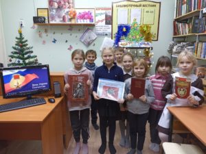 В ходе мероприятия методист библиотеки Проснева Екатерина познакомила ребят с краткой историей праздника, историческими событиями, в ходе которых было проявлено мужество и героизм. Ребята услышали о героях — земляках, которые совершили боевые подвиги в Великую Отечественную, Афганскую, Чеченскую войнах и были удостоены высоких наград. Рассказа о полном кавалере ордена Славы Семенове Николае Ивановиче, уроженце нашего села Чистопольские Выселки, показала информационный видеоролик, представила тематическую литературу.