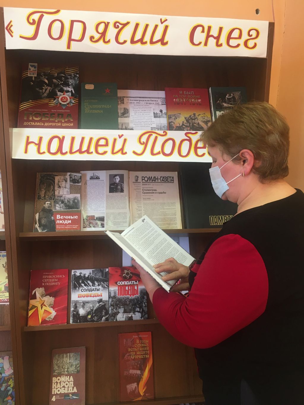 В Юлдузской сельской библиотеке была оформлена книжная выставка «Горячий снег нашей Победы», посвященная Сталинградской битве. На выставке представлены художественные книги, рассказывающие о битве, не имеющей себе равной на протяжении всей истории Великой Отечественной войны и битве унесшей жизни более 2 миллионов человек. Методист библиотеки провела обзор этой выставки где были представлены книги М. Шолохова «Они сражались за Родину», К. Симонова «Солдатами не рождаются», Ю. Бондарева «Горячий снег», В. Некрасова «В окопах Сталинграда» и другие. В ходе обзора читатели узнали о событиях Сталинградской битвы, о массовом героизме людей, проявившем в жестоком сражении самоотверженность, силу, волю, героизм и о том, какое значение в ходе Великой Отечественной войны и всей Второй мировой войны имела Сталинградская битва.