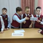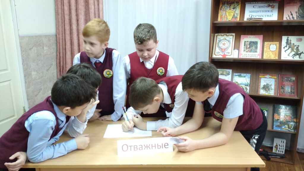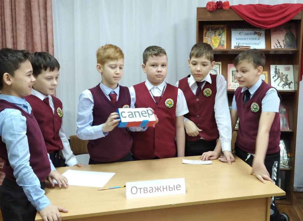 «Держава армией крепка!» так называлась игровая программа для мальчиков 4А класса СОШ №16, посвященная Дню защитников Отечества. Соревнования проводились между командами «Богатыри» и «Отважные». Для проверки силы, смекалки и ловкости будущим солдатам было предложено поучаствовать в конкурсах: «Артиллеристы», « Минное поле», « Следопыт», «Ты моряк, а я сапер», «Самый сильный, « Разведчики», «Попутный ветер». Ребята показали хорошие знания теории военного дела. В боевой «подготовке» они тоже не подкачали. Уложились в норматив по сборке «Автомата Калашникова». Свою меткость мальчики продемонстрировали в игре « Самый меткий снайпер». Хорошо проявили себя участники и в конкурсе « Великие полководцы», «Как стать генералом». На «привале» ребята показали свое умение варить кашу и приняли участие в танцевальном батле «Эх, яблочко». Обе команды были хороши, но лучшей стала команда «Богатыри». Молодцы, ребята! Показали, что будете достойными защитниками нашей Родины. В завершении игровой программы девочки прочитали заранее подготовленные стихотворения и вручили своим одноклассникам небольшие подарки. Сотрудникам библиотеки было очень приятно получить от учащихся 4А класса в подарок книгу «Республика Татарстан. Увлекательное путешествие».