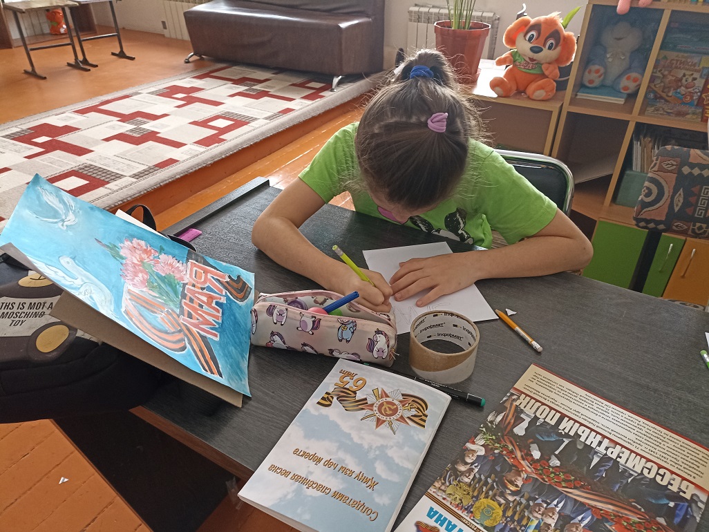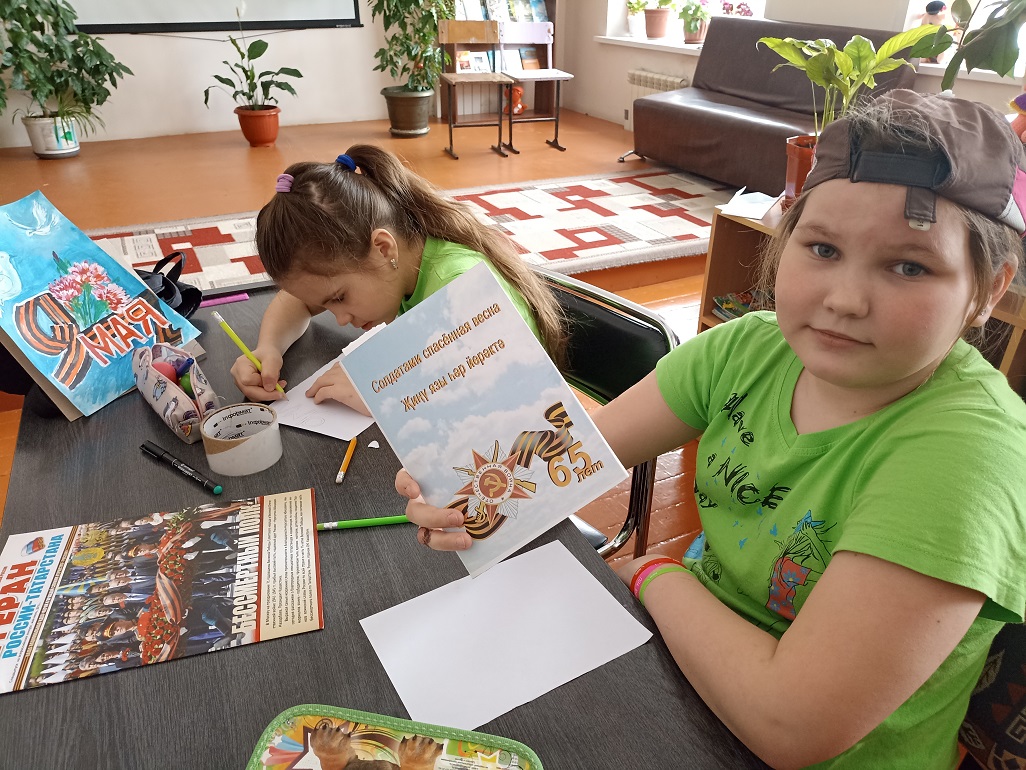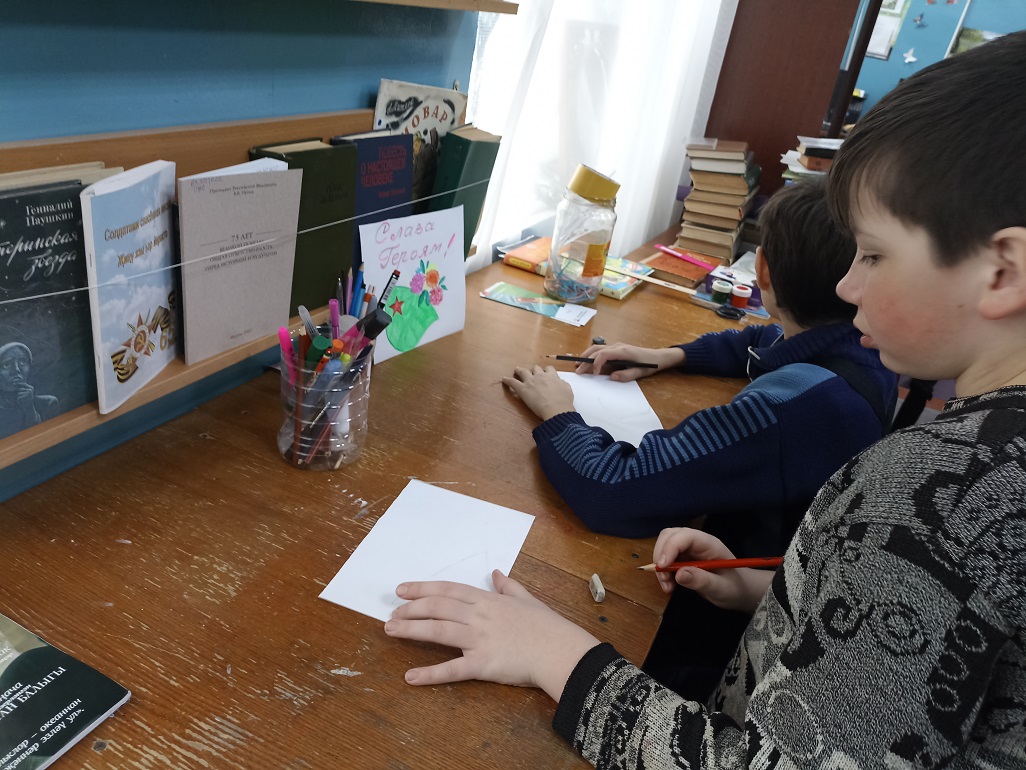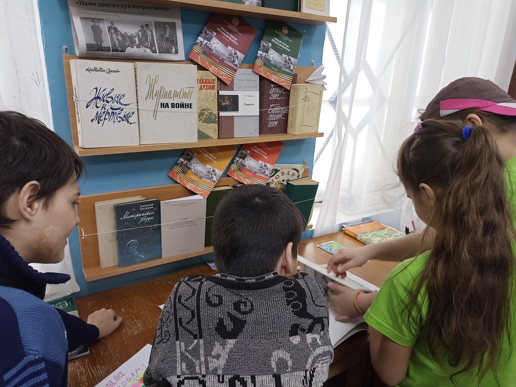 С помощью изобразительного искусства можно познакомить детей с произведениями искусства, отражающими события военных лет, расширить знания о Великой Отечественной войне, о её защитниках и героях и развить творческие способности. Важно воспитывать гордость за подвиг советского народа, желание беречь мир, а также прививать чувство патриотизма и любви к Родине, уважение к её истории. В преддверии праздника в библиотеке читатели познакомились с книжной выставкой «В сердцах и книгах память о войне», прочитали стихи Ю. Друниной. На выставке были представлены рисунки и отрывки из сочинений детей – участников конкурса детского творчества «Дети войны» из книги «А были вместе-детство и война…» . Война – страшное, жестокое слово, когда его слышишь, слезы текут и в голове возникают образы из фильмов, из рассказов ветеранов о том, как сражались герои за наше мирное небо. Герои Победы – это юные мальчики, сбежавшие на фронт, чтобы сражаться за будущее своей страны, это молоденькие девушки-медсестры, которые выносили раненных с полей боя, это солдаты, готовые биться до последней капли крови за Родину, это женщины, которым пришлось учиться воевать наравне с мужчинами, женщины, которым пришлось осваивать мужские профессии, чтобы прокормить и обеспечить фронт всем необходимым, старики, которые трудились не покладая рук, дети, у которых не было полноценного детства и матери, жены, которые годы ждали своих сыновей и мужей. Все они – Герои Победы – наши деды, прадеды, бабушки и прабабушки, на долю которых выпала страшная и долгая война. Мы должны помнить и чтить их подвиги, ведь они положили миллионы жизней, чтобы мы с вами могли жить в свободной стране, чтобы у нас было будущее, которое мы сами можем выбирать, чтобы был мир во всем мире, чтобы не было войны.