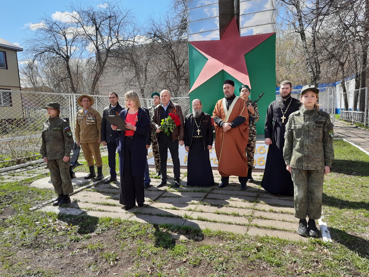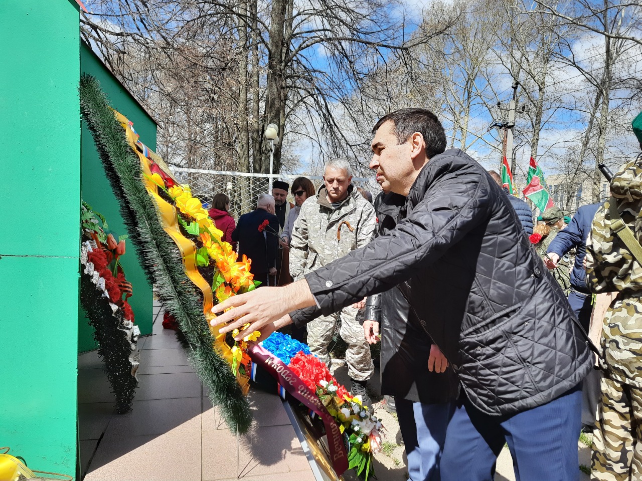 По традиции почтили память погибших и умерших минутой молчания, возложили венки и цветы к мемориалу.