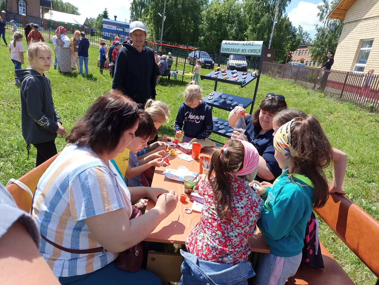 В селе Чистопольские Выселки проведена праздничная программа с песнями и играми. В рамках праздничного мероприятия методистом сельской библиотеки был организован мастер-класс с гостями праздника по расписыванию сувенирных гипсовых барельефов на магнитах в формах бабочек, цветов, чайников и самоваров.