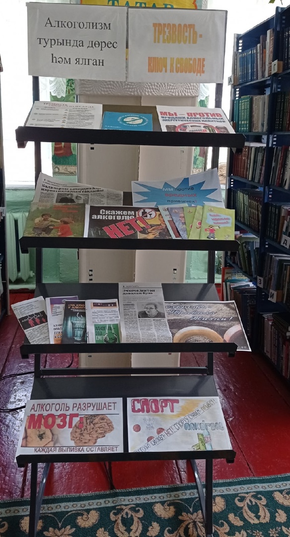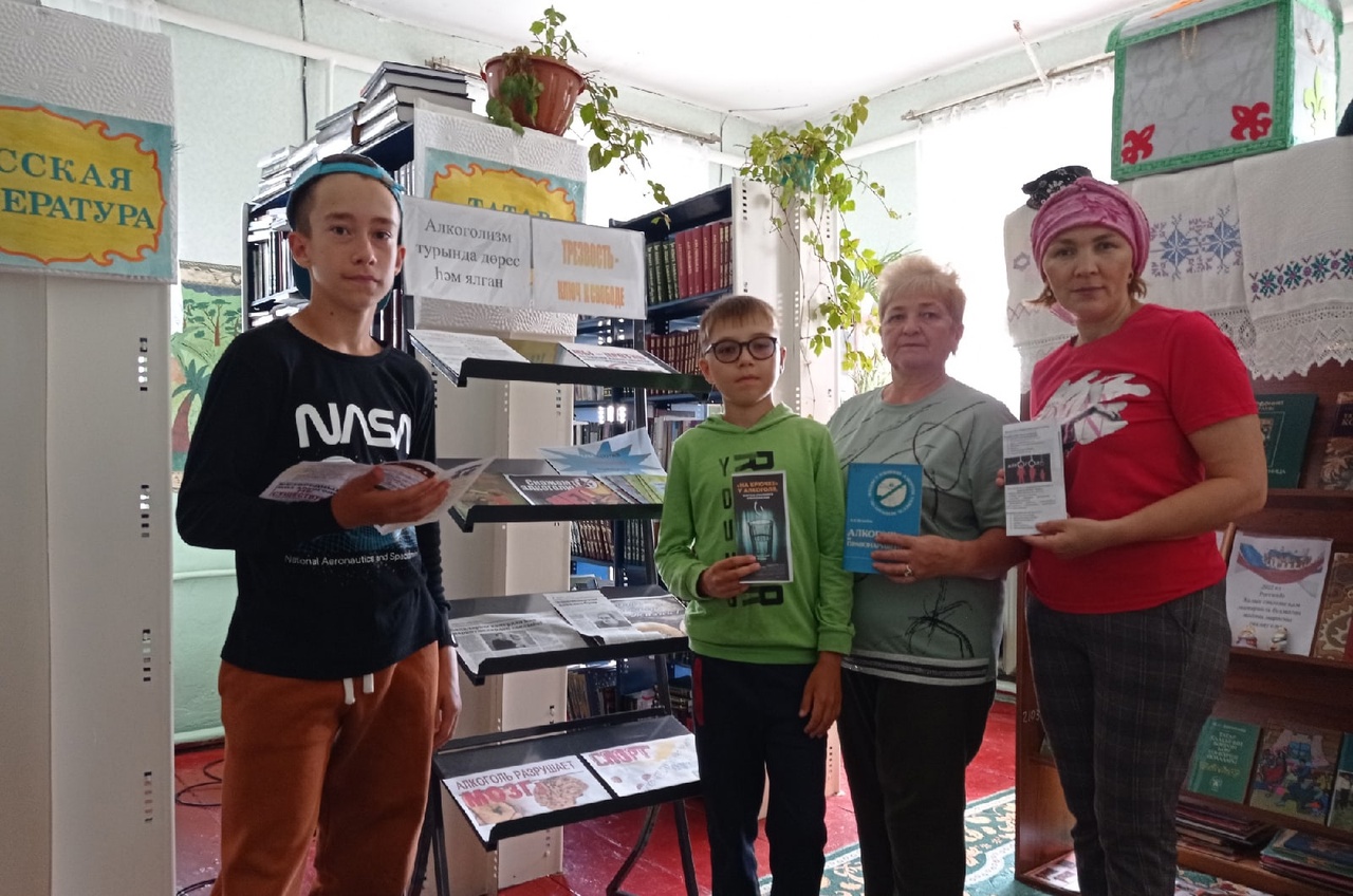 В Кзыл Яланской сельской библиотеке организована книжная выставка «Правда и ложь об алкоголизме» и проведена беседа. Сделаны буклеты «Алкоголь- разрушитель здоровья» и розданы населению.