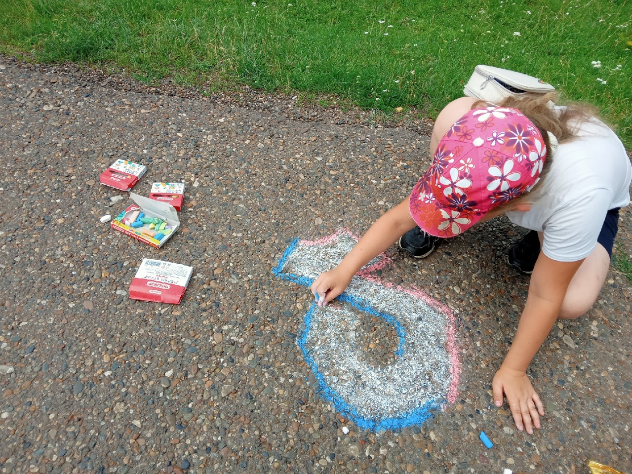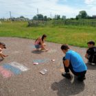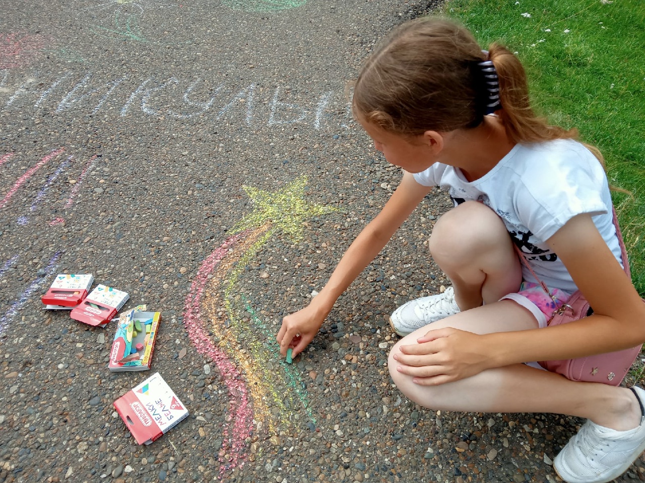 Рисовать цветными мелками, да еще не на бумаге, а на асфальте — это счастье для наших художников. Асфальт расцветал красками, желтое солнце светило неровными лучами, на лугу расцвёл ковёр из разноцветных цветов, рисовали цветы, бабочек, природу. Дети очень старались, аккуратно раскрашивая свои рисунки. Никто не скучал, были все заняты творчеством. Праздник прошел интересно и весело. По окончании мероприятия ребята получили сладкие призы.