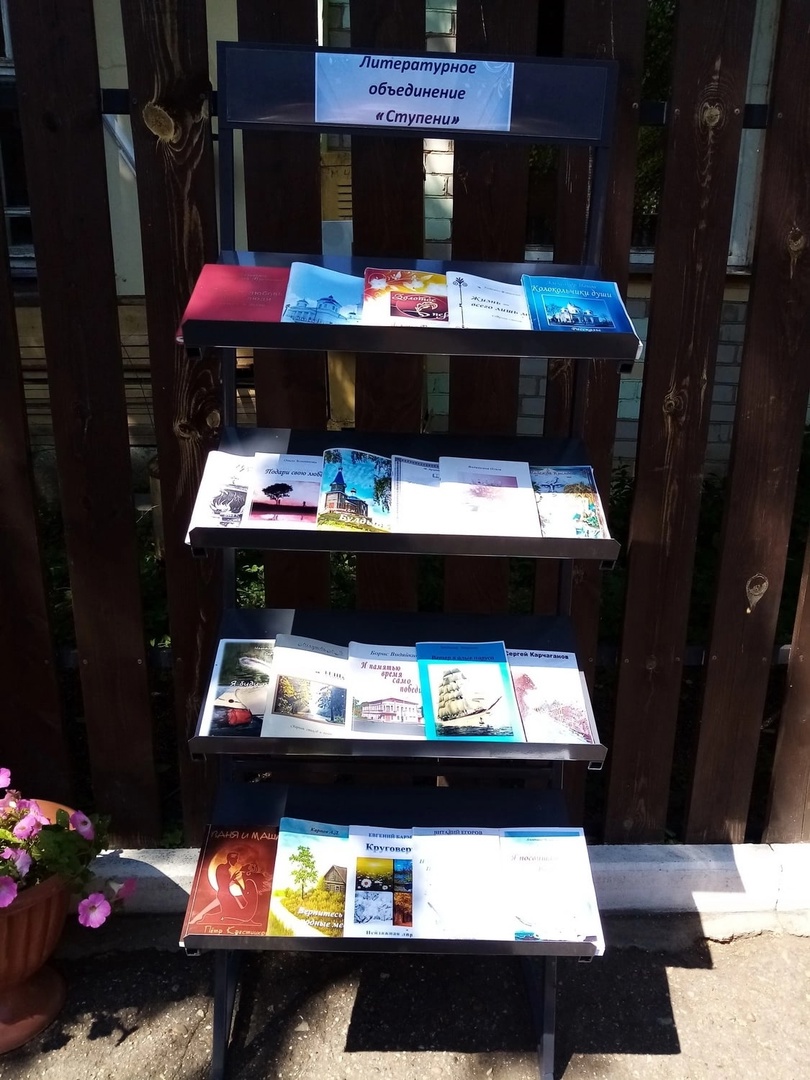 Директор музея Б. Пастернака Демченко Л. Г. во дворе музея рассказала о литературной жизни города, и обратила внимание гостей на литературные выставки. Книжные выставки оформляла Центральная библиотека совместно с музеем Б. Пастернака. Один стеллаж был полностью посвящён литературному объединению «Ступени», и вмещал в себя произведения талантливых чистопольцев.