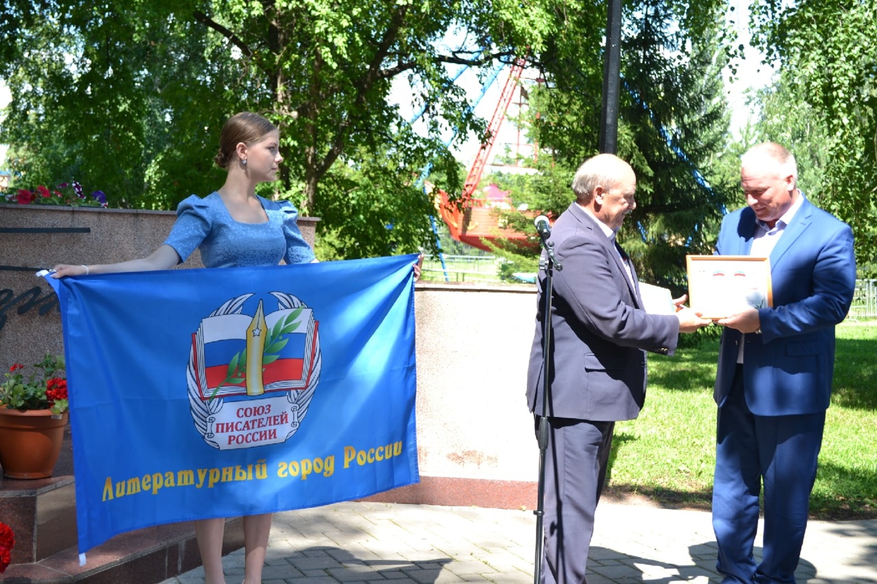 Так же городу Чистополь был вручён диплом, вымпел «Литературный город России» и малая копия флага Союза писателей России». Глава города Дмитрий Алексеевич Иванов в ответ подарили Союзу писателей России герб города Чистополь.