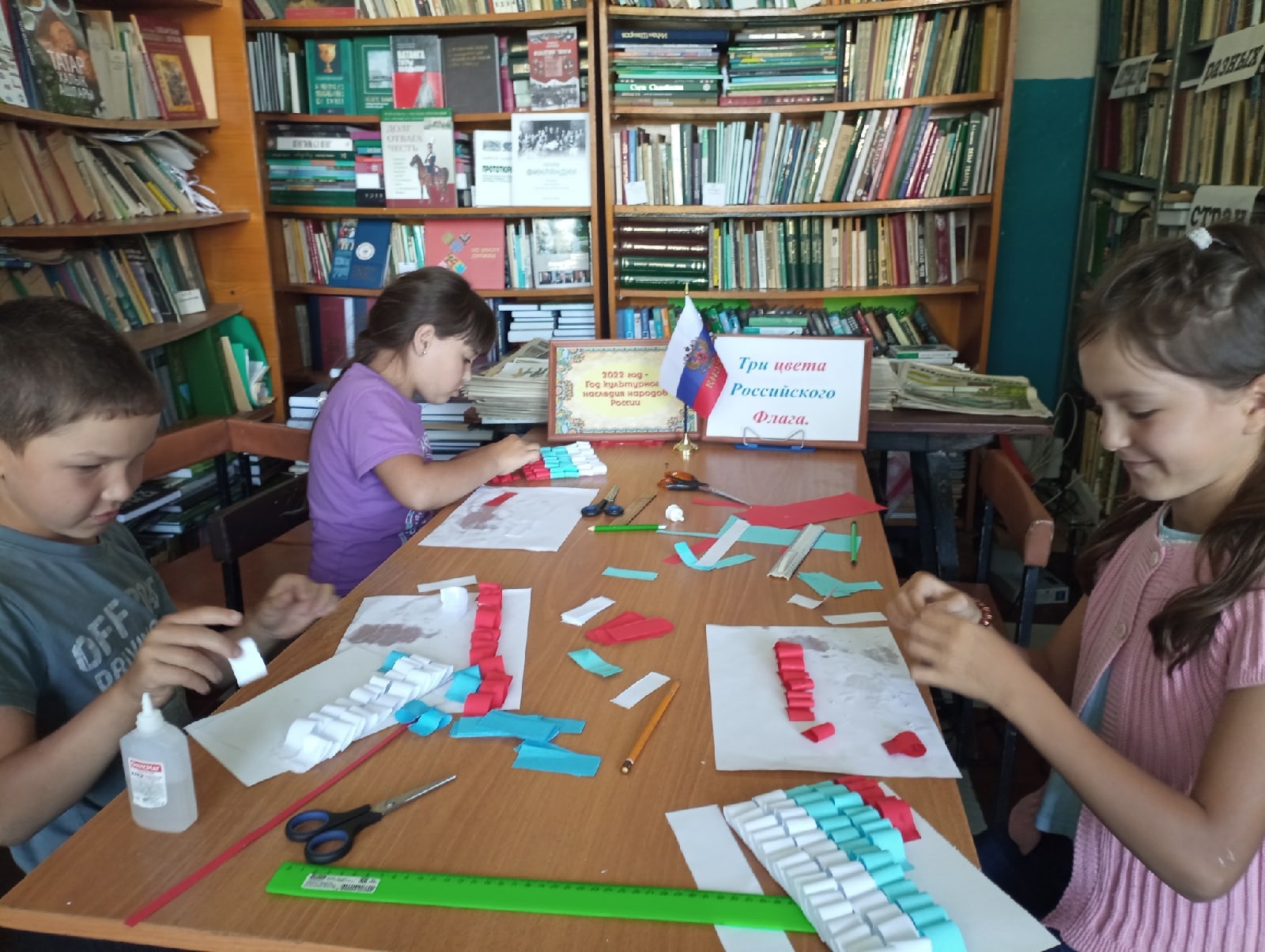 22 августа- вся страна окрасится в цвета триколора — в России отмечают День государственного флага. Символ единства нашей большой и многонациональной родины, он имеет более чем 300-летнюю историю. Государственный флаг символизирует верность нашим традиционным ценностям, от которых мы никогда не отступим, правде и справедливости, солидарности и милосердию. Уважение к многовековой непрерывной истории России, к достижениям и победам наших предков, которые завещали нам беречь и защищать родину. В Исляйкинской сельской библиотеке ко дню Российского флага был проведен мастер -класс «Три цвета Российского флага» .Юные читатели узнали историю возникновения и утверждения флага, как одного из символов российского государства . Они узнали о том, что в каждой стране существует триединство символов: герб, флаг, гимн.