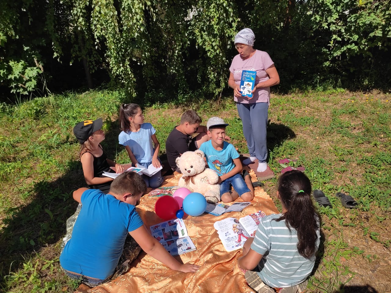 Лето – замечательная пора, когда хочется проводить на свежем воздухе как можно больше времени, ведь яркое солнце и теплый ветерок так и манят пойти прогуляться. С целью максимального приближения к читателям и создания благоприятных условий для чтения детей и отдыха в летние каникулы, в Тат.Сарсазской сельской библиотеке работает летний читальный зал «С книжкой на траве». Летний читальный зал – это замечательный способ провести теплый день с книжкой в руках, возможность пообщаться и познакомиться с приезжими, на лето к родным, бабушкам и дедушкам ребятами. Любой прохожий, не заходя в библиотеку, может стать посетителем читального зала под открытым небом, взять понравившуюся книгу или журнал с собой. Почитать можно, расположившись прямо перед библиотекой на травяном газоне. Сегодня юные читатели с большим удовольствием провели время в библиотеке под открытым небом, проявляя активный интерес к журналам: «Ялкын», «Салават купере».