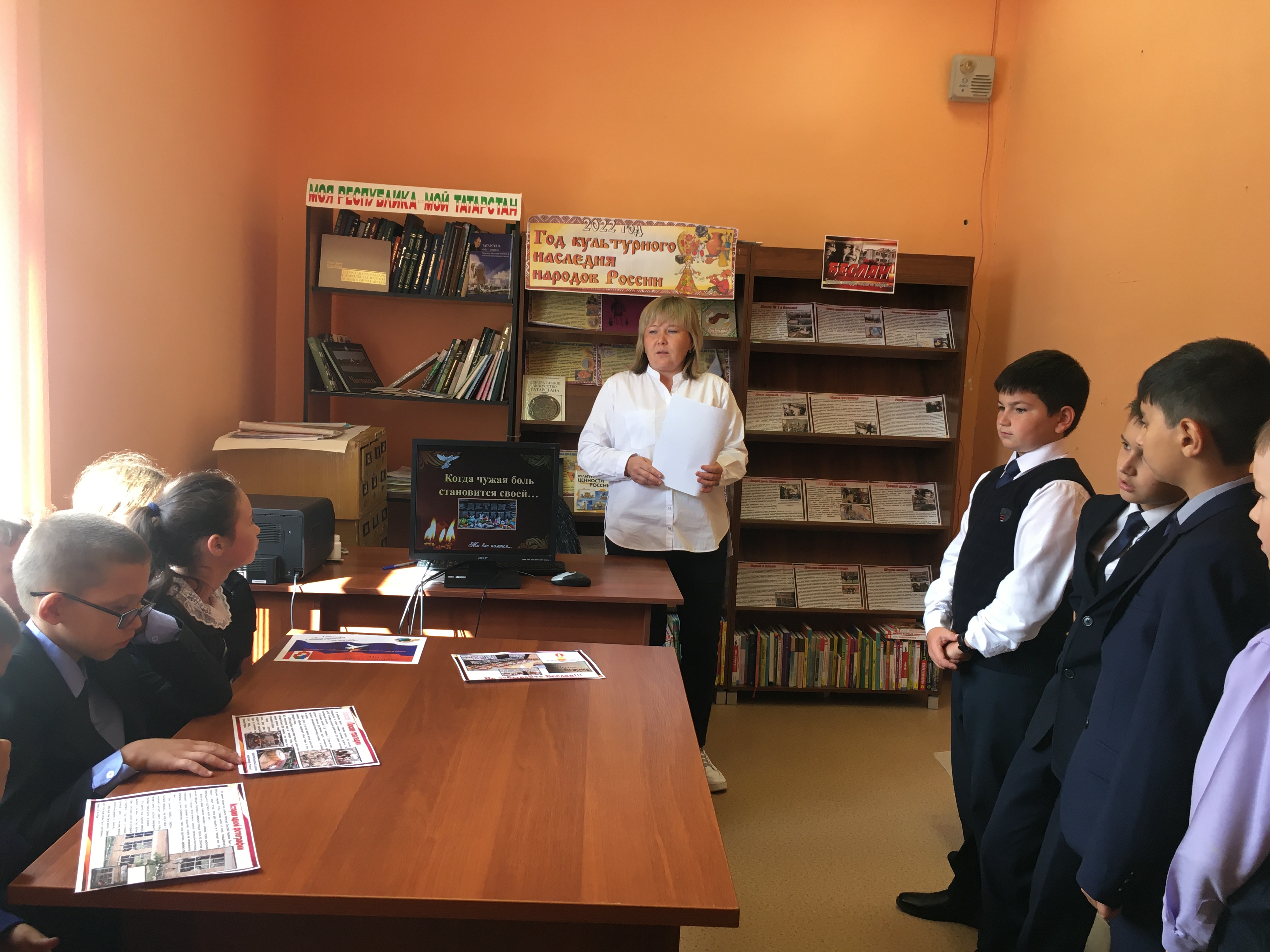 В этот день Юлдузская сельская библиотека совместно с методистами СДК и учениками 5 класса провели час памяти «Сгорая, плачут свечи». При помощи слайд – презентации «Когда чужая боль становится своей…» познакомили учащихся с хроникой событий, рассказали о жестокости и бесчеловечности террористов, об отваге и мужестве спецназа, учителей и воспитателей, о страхе детей. В ходе мероприятия были раскрыты понятия таких слов как: «терроризм», «теракт» и причины, порождающие желание совершать террористические акты. Затем вместе обсудили, как нужно себя вести в чрезвычайных ситуациях, при обнаружении подозрительных предметов, брошенных автомобилей, встрече с подозрительными людьми. Для читателей в библиотеке была подготовлена выставка «Беслан трагедия, которую никто не забудет».