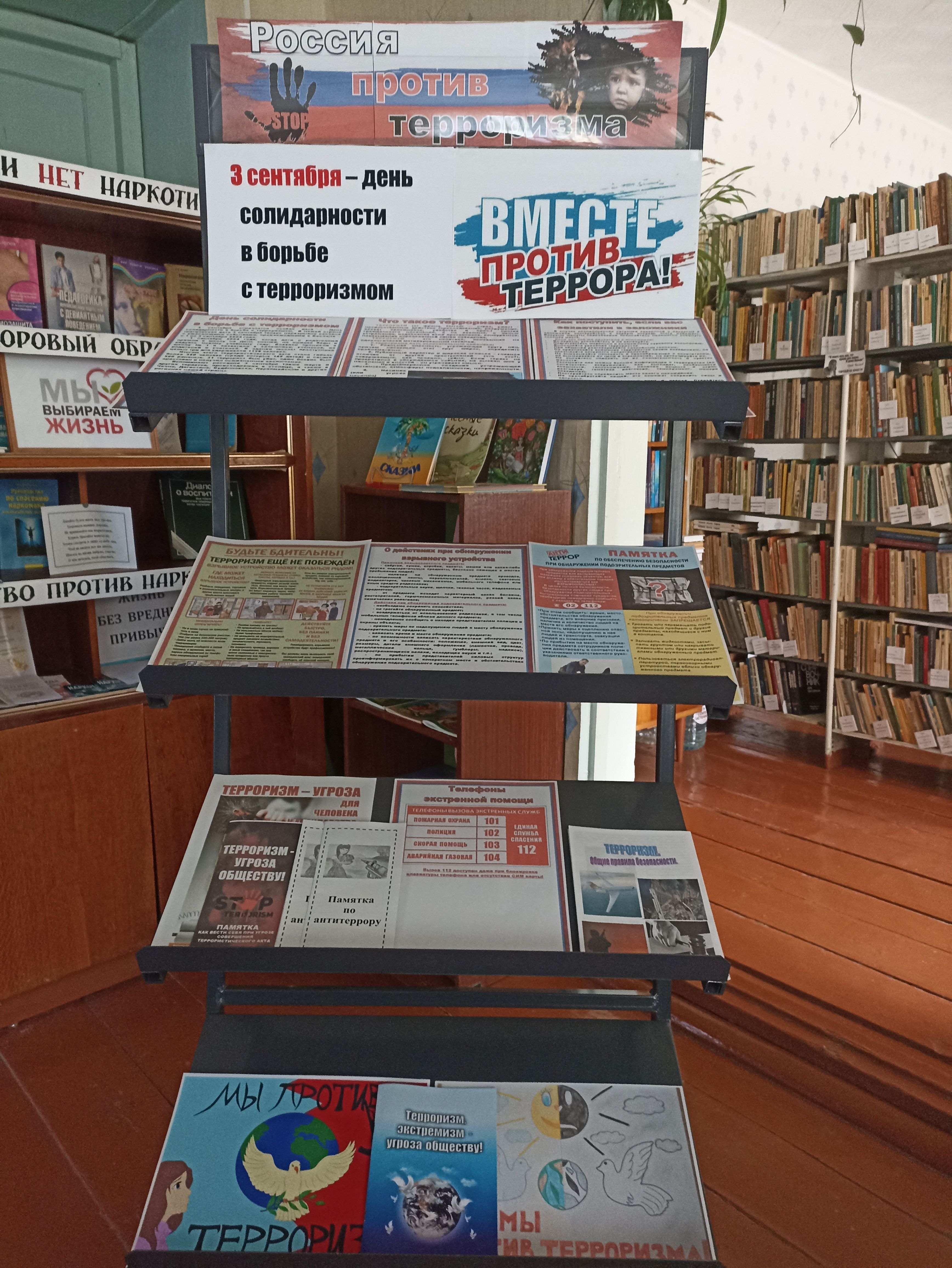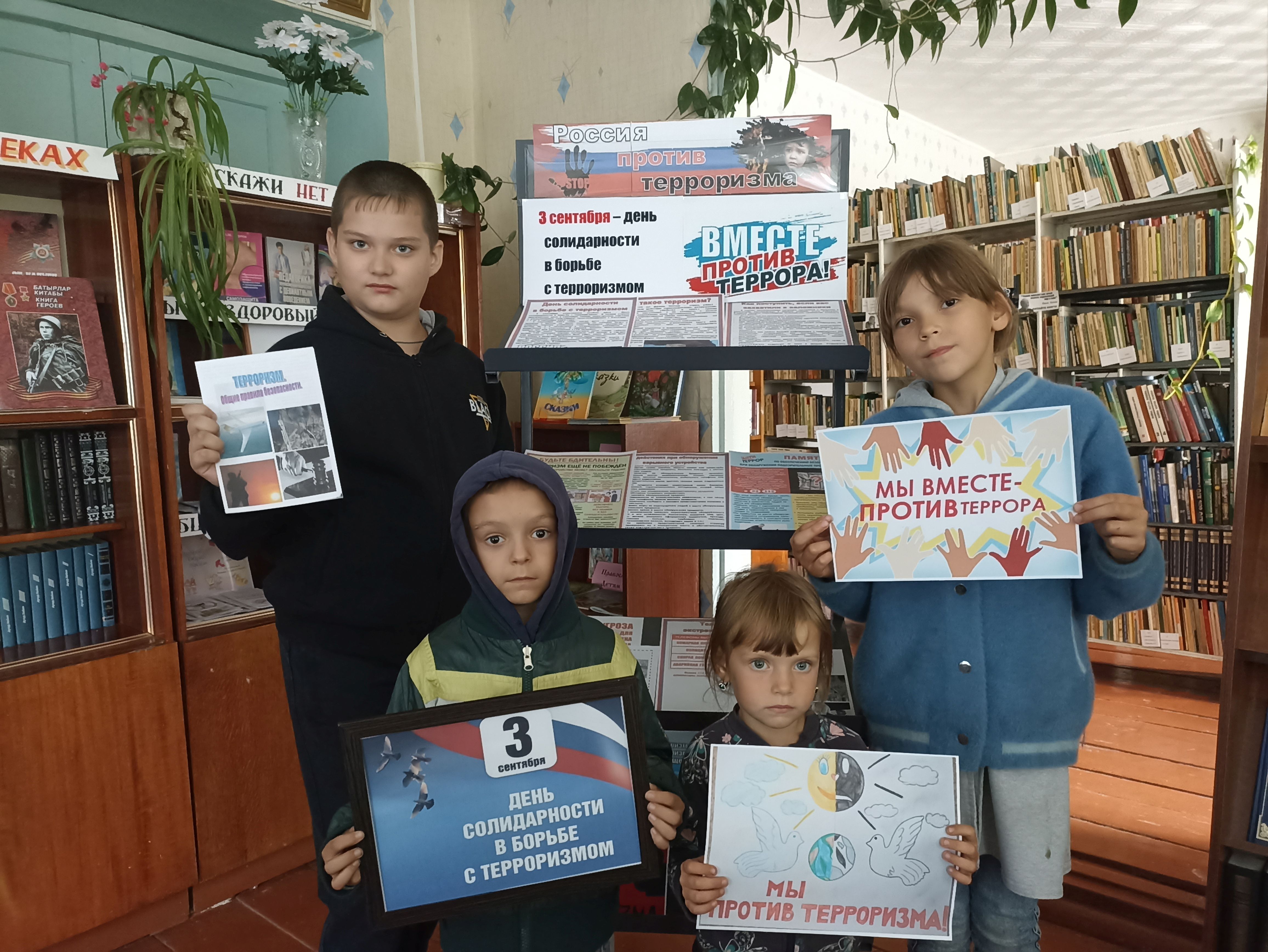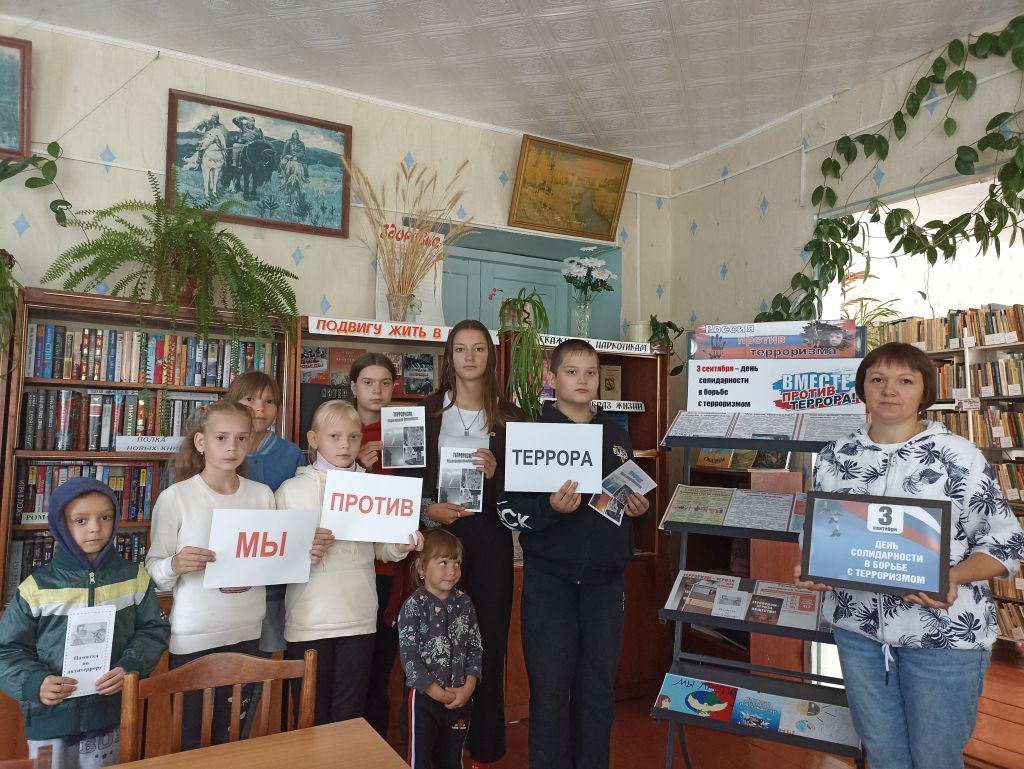 3 сентября в России отмечается особая дата — День солидарности в борьбе с терроризмом. Эта памятная дата связана с одним из наиболее трагичных событий в истории современной России — террористическим актом в школе города Беслан. В этот день Четырчинская сельская библиотека провела антитеррористическую акцию «Мы против террора». В библиотеке была оформлена выставка «Россия против терроризма». В ходе беседы участники узнали, что такое терроризм, каковы его цели, вспомнили о наиболее известных терактах последнего десятилетия. Ребята получили рекомендации по предупреждению терроризма, а также познакомились с мерами предосторожности и правилами поведения при теракте. Всем участникам акции вручены буклеты с общими правилами безопасности.