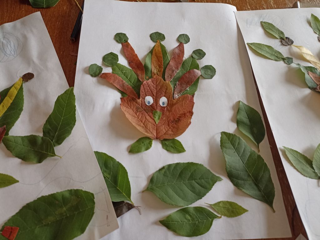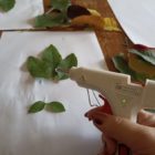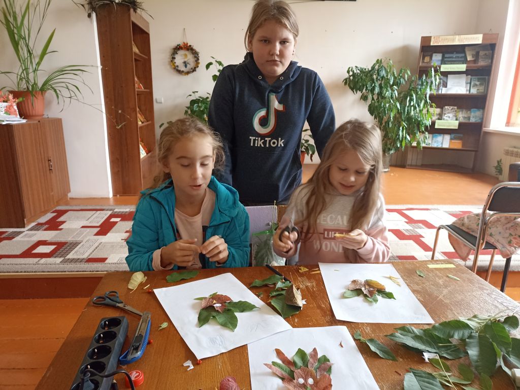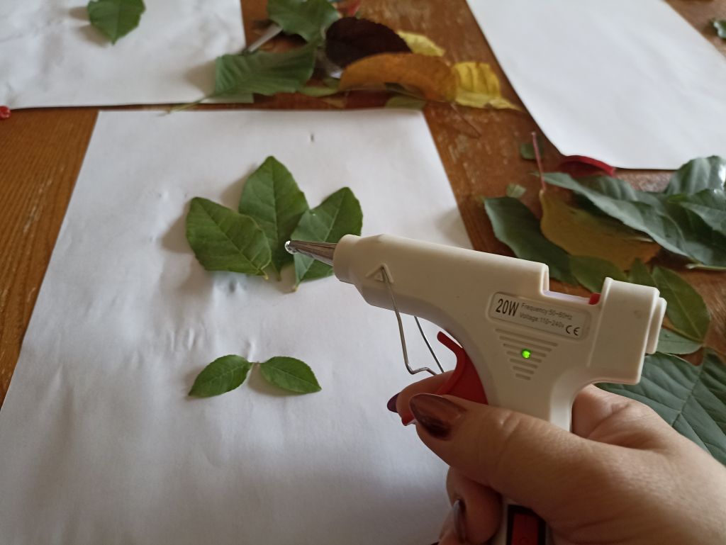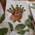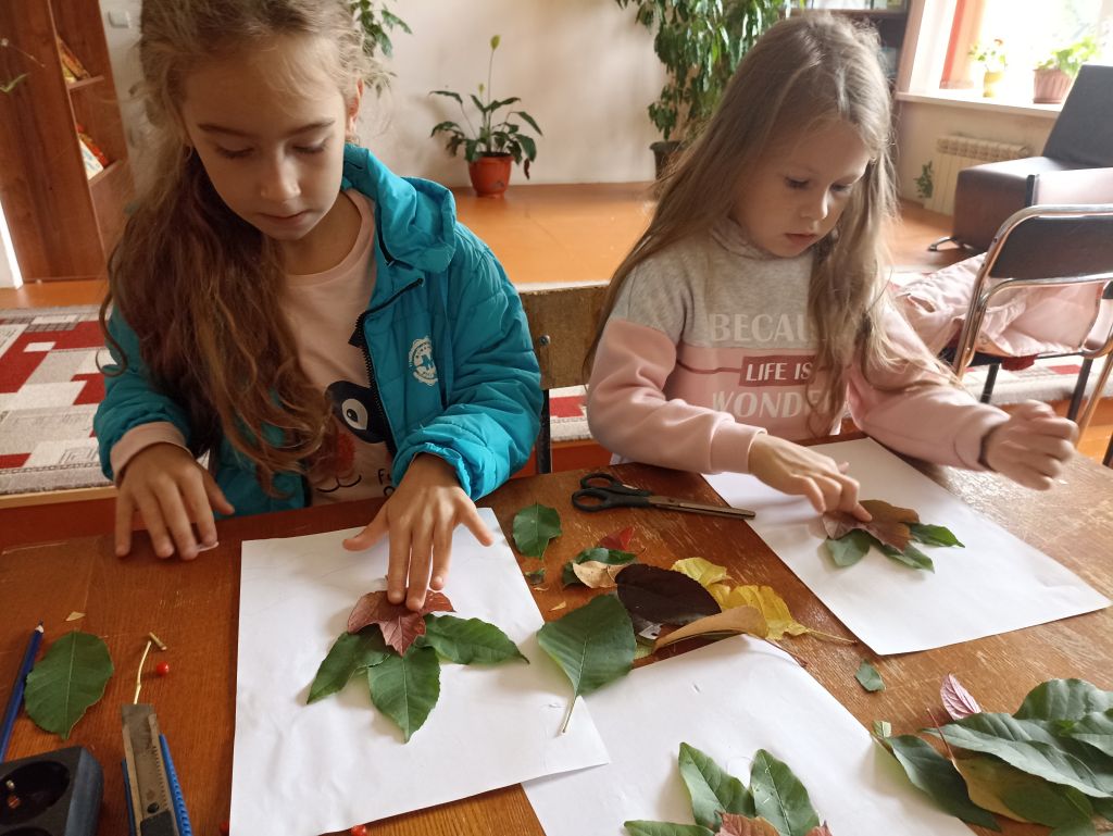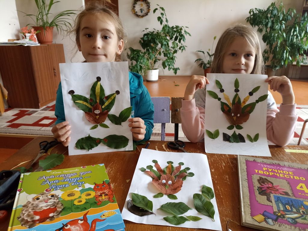 При составлении композиции открытки важно эмоционально-положительный настрой и желание выполнить поздравительную открытку. Для открытки мы с ребятами собрали осенние листья, подготовили простой карандаш, клей-пистолет, альбомный лист, ножницы. У каждого участника получились красивые, яркие открытки.
