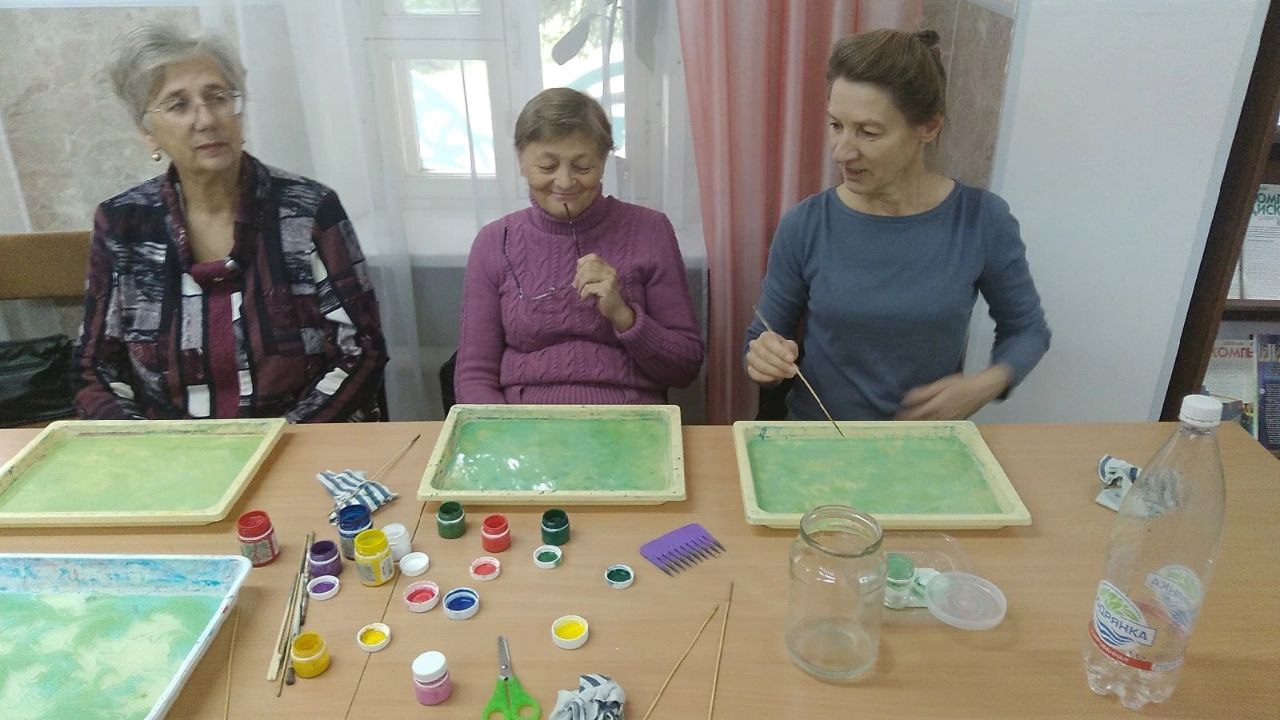 5 октября В Центральной детской библиотеке, для бабушек, прошел мастер-класс по рисункам в стиле Эбру-рисование на воде. Занятие прошло весело и продуктивно. 6 октября Центральную детскую библиотеку посетили дети подготовительной группы МБДОУ Детский сад 6. Библиотекари побеседовали с ребятами о любви и уважении к старшему поколению. Прочитали стихи из книг с книжной выставки «Ладушки, ладушки дедушки и бабушки» . Ребята спели песню на татарском языке, вспомнили стихи, даже придумали свои. Весело отгадывали загадки про сказочных дедушек и бабушек. Ребята унесли с собой букеты, сделанные своими руками — подарок бабушкам и дедушкам.
