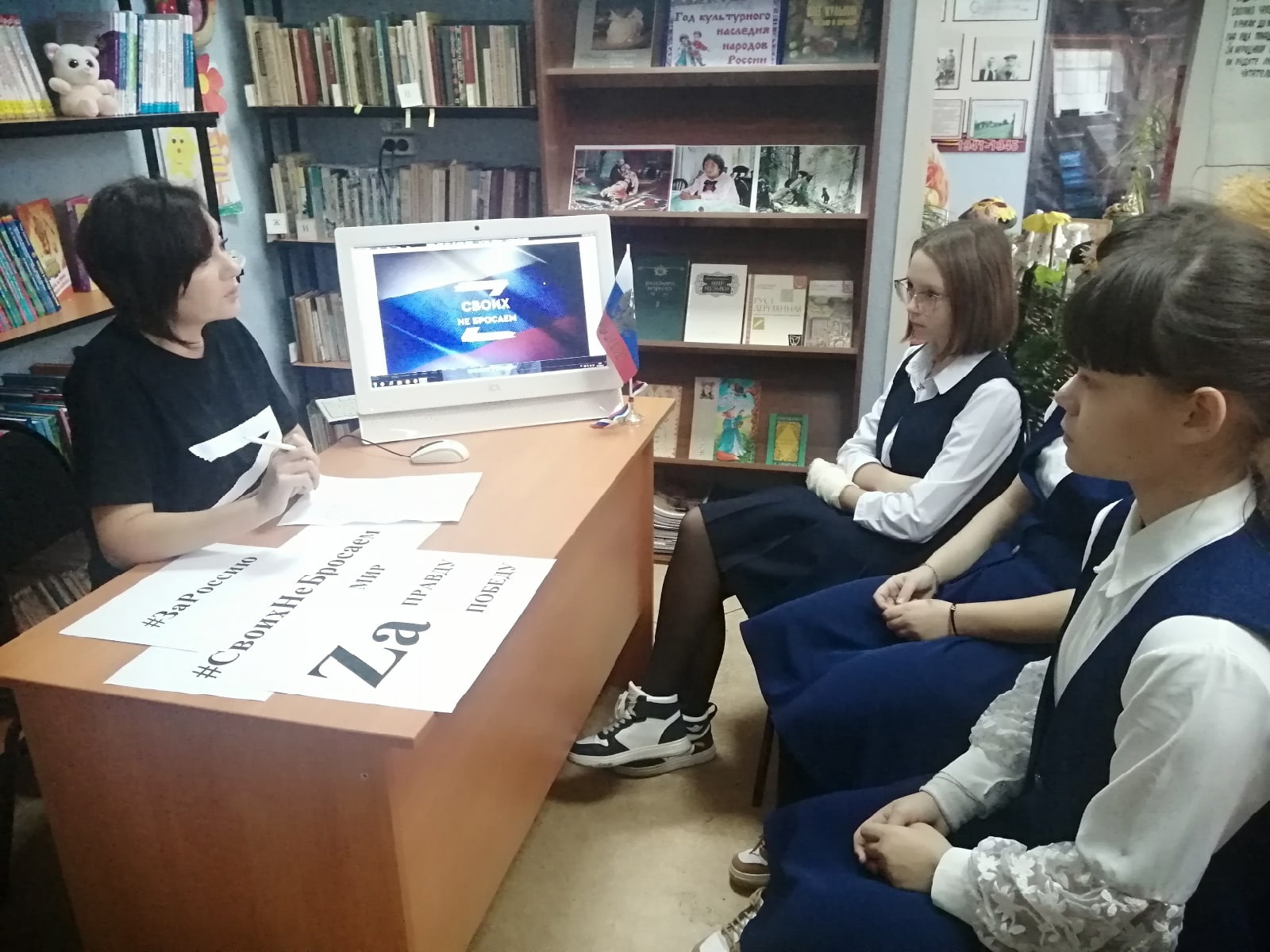 В рамках мероприятий в поддержку СВО библиотекарем Малотолкишской сельской библиотеки была проведена информационная беседа «За Мир без нацизма» с социально — активными представителями местного населения (работниками образования и учащимися школы). Библиотекарь рассказала о включении в состав России по итогам референдума новых регионов, ЛНР, ДНР, Запорожья и Херсона. О последних сведениях хода СВО, о переходе украинских властей к террористическим методам борьбы. Об офицерах и солдатах отдавших свои жизни в ходе спецоперации на Украине. Завершилось мероприятие словами библиотекаря :»Мы хотим, чтобы российские военные, выполняющие жизненно важную задачу знали, что мы с ними и с ними вся Россия! Мы за Мир без нацизма!