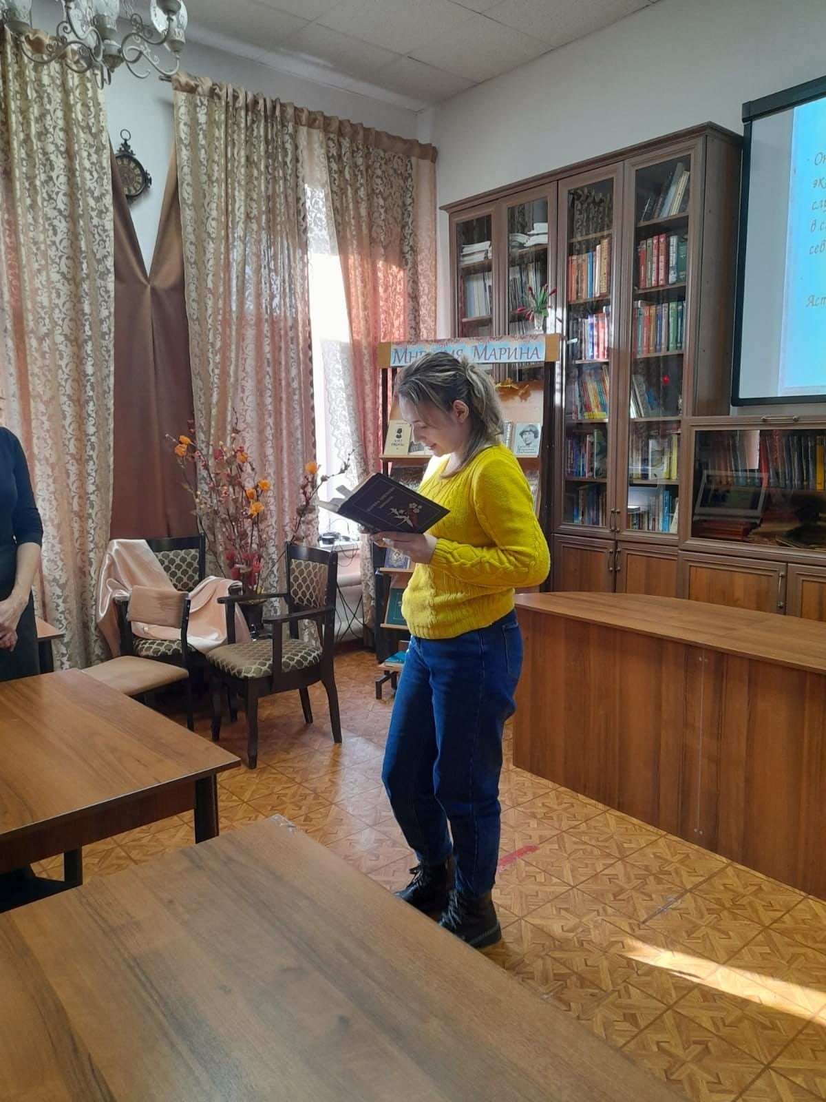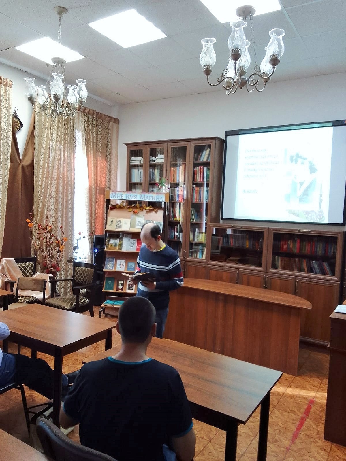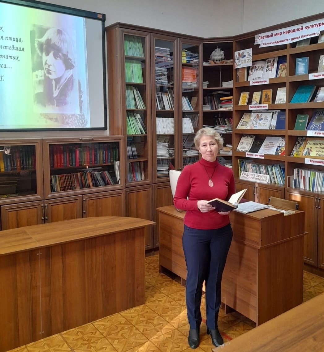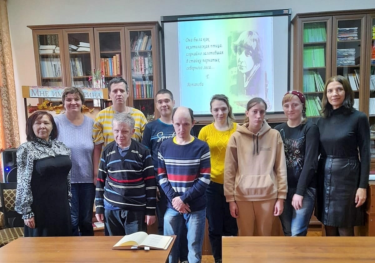 Сегодня гостями Центральной библиотеки стали молодые люди с ментальными нарушениями развития из отделения дневного пребывания ГАУСО «Балкыш». Сотрудники библиотеки провели для них литературно-музыкальный час к 130-летию со дня рождения Марины Цветаевой -«Марина — заповедная страна». Ребятам рассказали о жизни и творчестве М.Цветаевой, показали отрывки из фильмов : «Жестокий романс» и « Ирония судьбы или с легким паром», где звучали песни на стихи М.Цветаевой, показали документальный фильм «Дневник М.Цветаевой». На встрече звучали стихи поэтессы в исполнении самих ребят. Мероприятие сопровождалось мультимедийной презентацией. К юбилею Марины Цветаевой в библиотеке оформлена книжная выставка «Мне имя-Марина», где представлены сборники стихов поэтессы и литература о ней. Встреча дала положительный результат и вызвала с обеих сторон эмоциональный отклик.