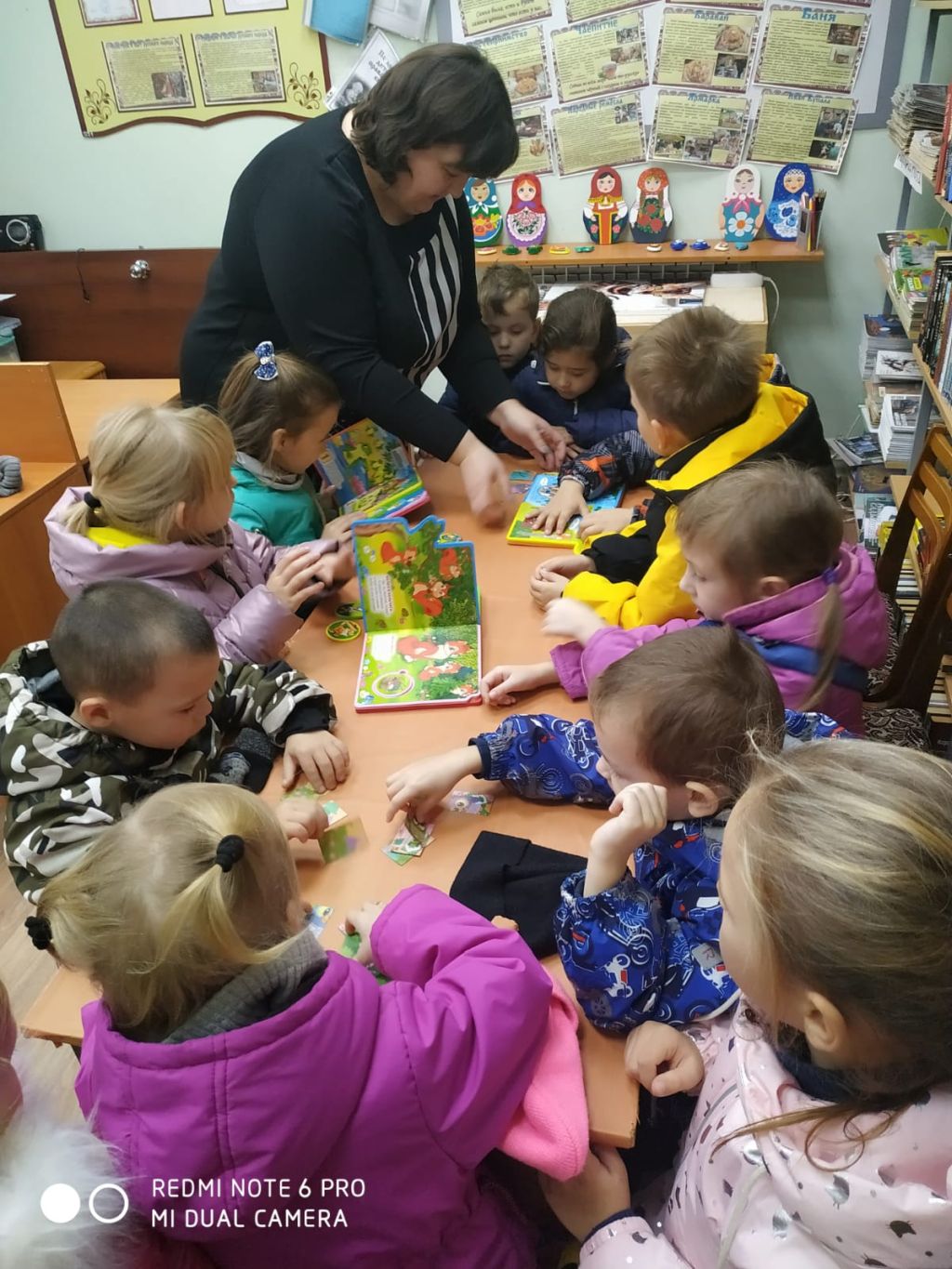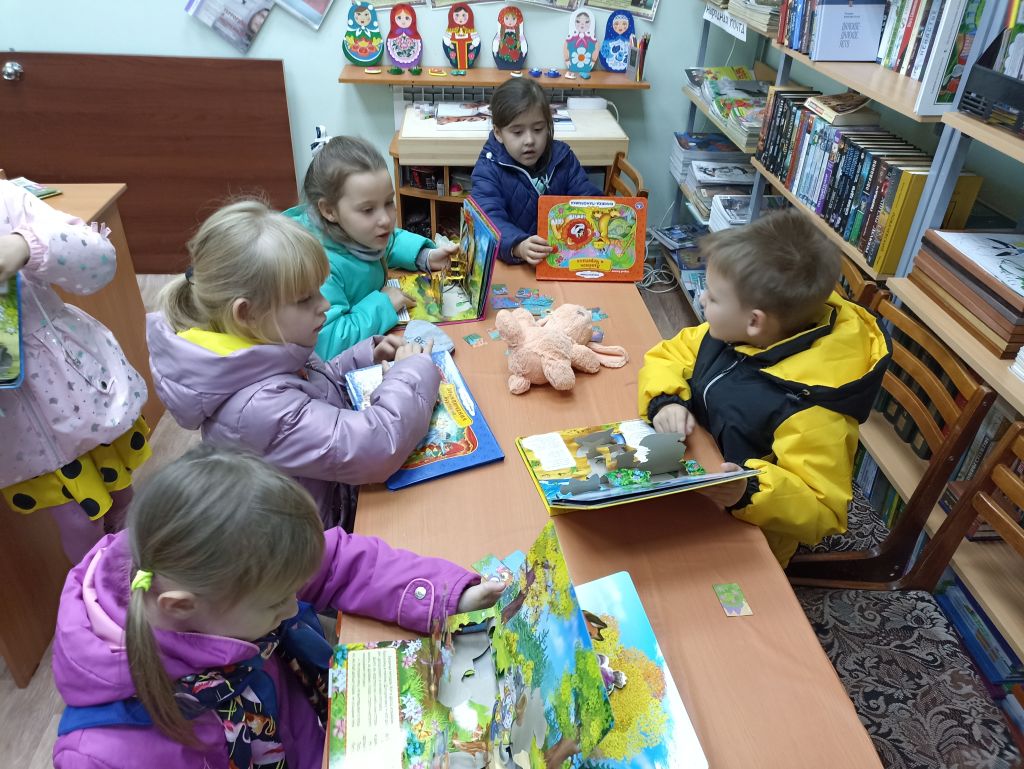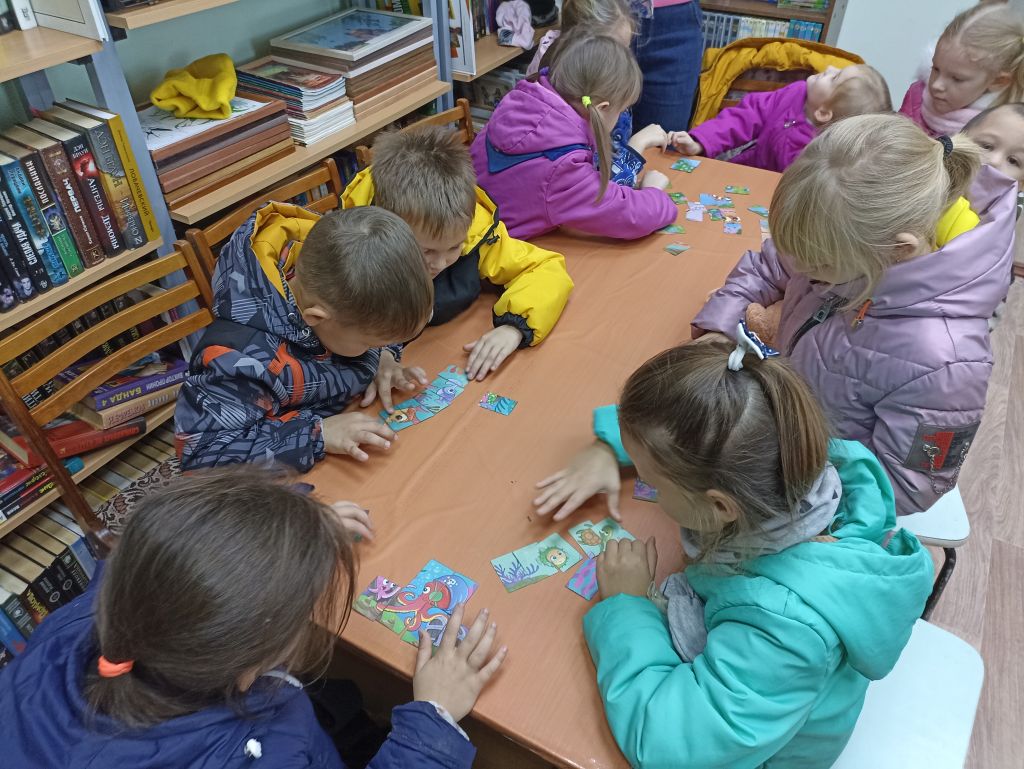 Методист библиотеки радушно встретила детей и предложила совершить увлекательное путешествие в мир книг, познакомила с коллекцией журналов, рассказала о правильном обращении с книгами, как выбирать книги и как вести себя на абонементе и в читальном зале. После беседы с детьми поиграли в игру «Собери картинку» и посмотрели мультфильм из серии «Домики» про библиотеку.