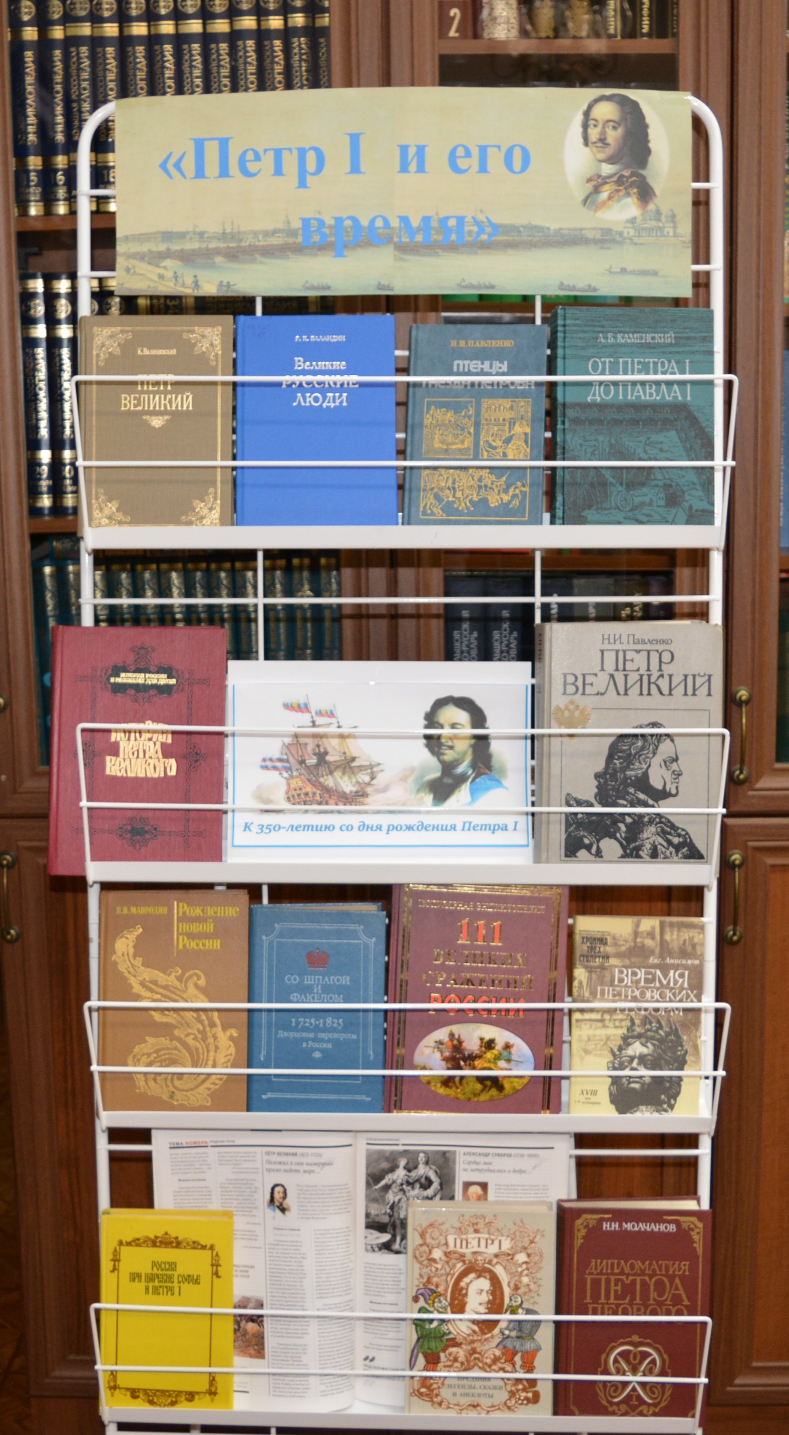В честь 350-летия Петра Великого в читальном зале Центральной библиотеки была оформлена книжная выставка «Петр I и его время», на которой представлена литература о выдающемся российском императоре, его деяниях и личности, талантах и неутомимой энергии, успехах и неудачах на фоне событий того времени. Перед читателями откроется уникальная панорама времён правления Петра Великого, благодаря которому Россия стала великим государством, заставившим считаться с собою европейские державы.